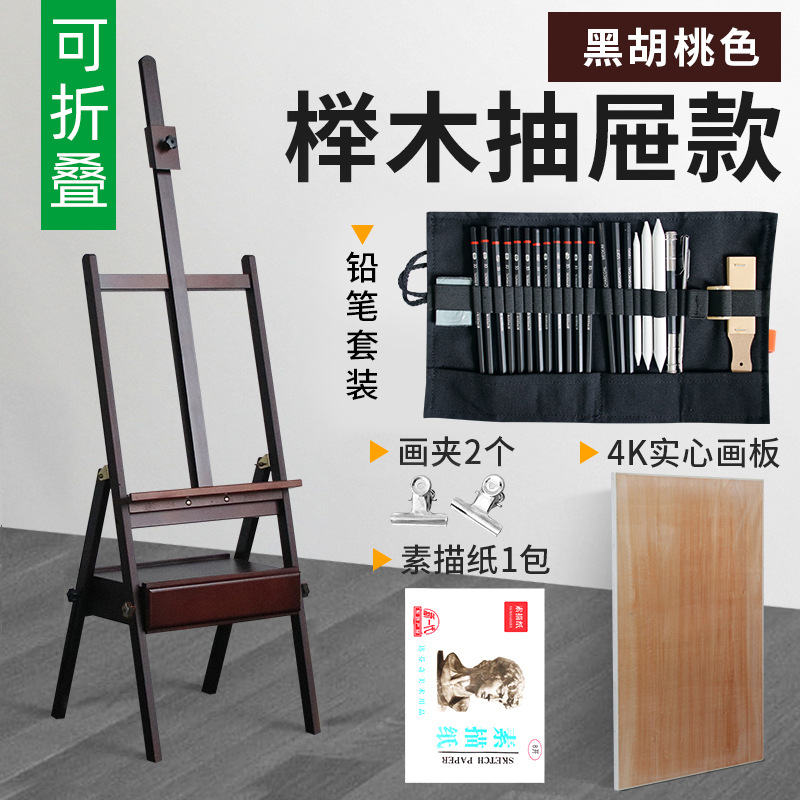 black walnut-color beech drawer easel + sketch set 1 generation common style foldable