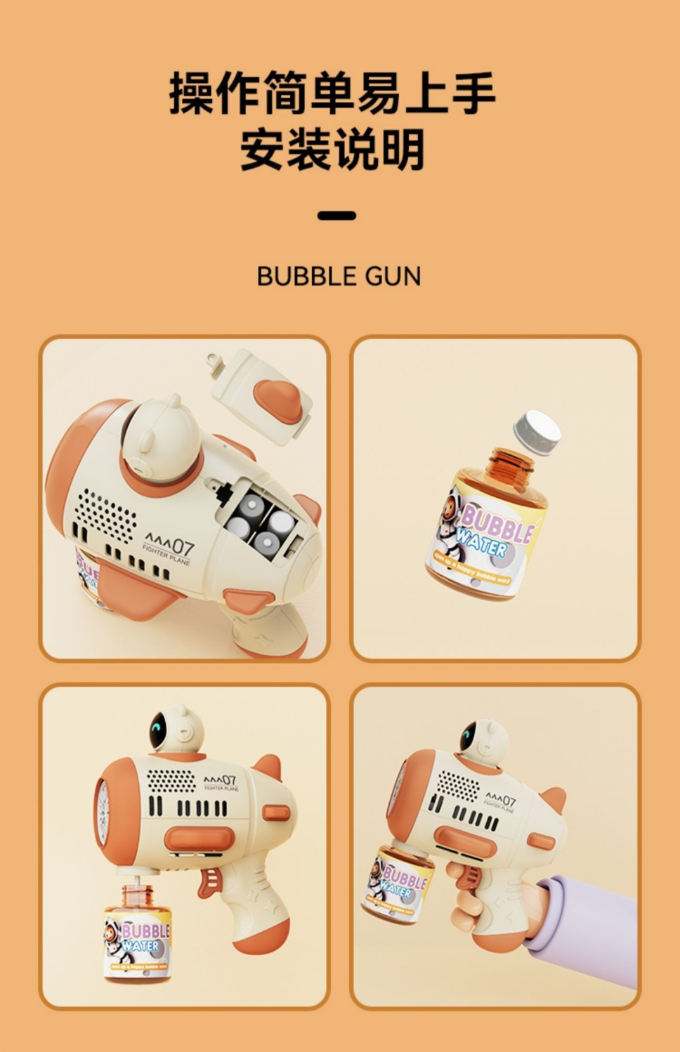 [milk brown] 12-hole light bubble gun-battery panel-[deluxe edition] bubble water +2