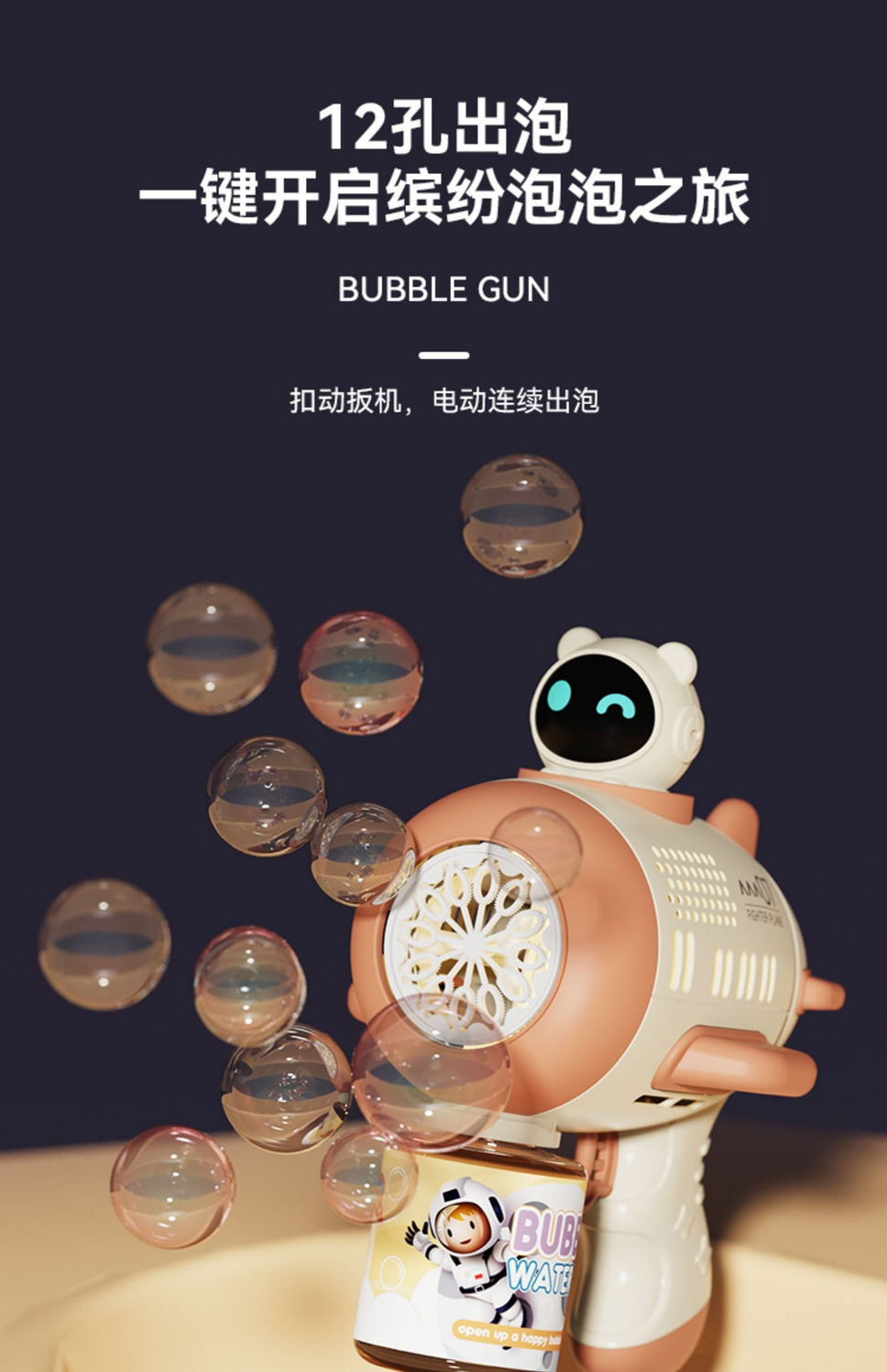 [milk brown] 12-hole light bubble gun-battery panel-[top version] bubble water +3