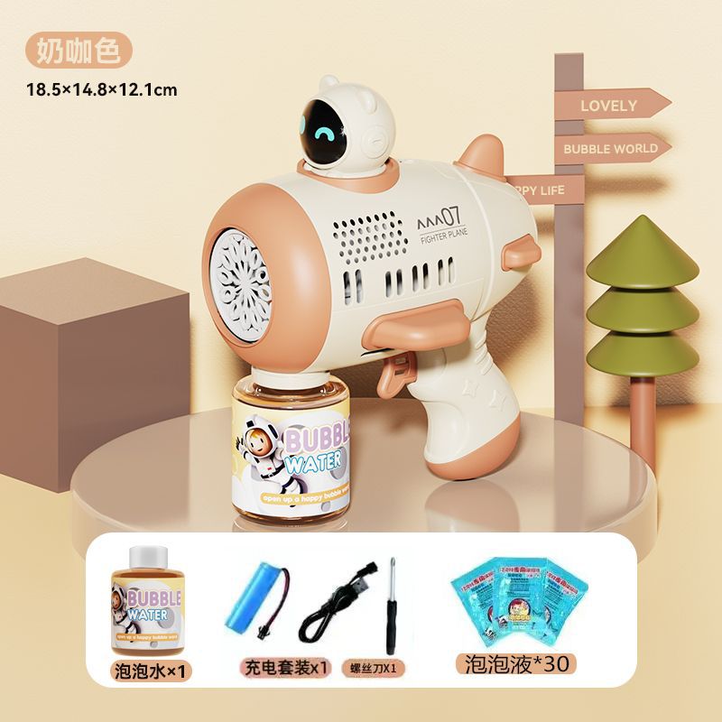 [milk brown] 12-hole light bubble gun-rechargeable version-[standard version] bubble water +1