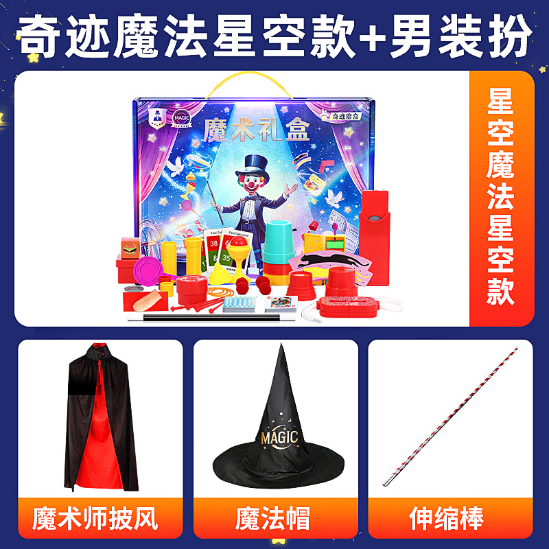 [miracle magic starry sky + boys style stars get wizard hat + cloak + telescopic stick]]
