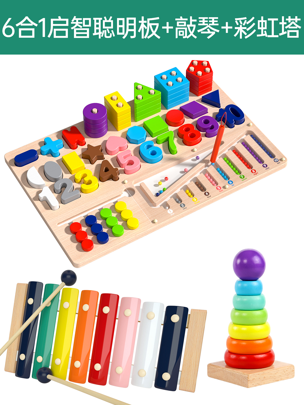 six-in-one montessori smart board + percussion piano + rainbow tower