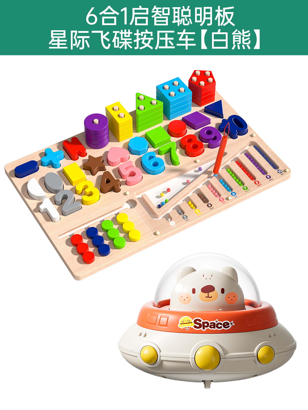 six-in-one montessori smart board + interstellar ufo press car [white bear]]