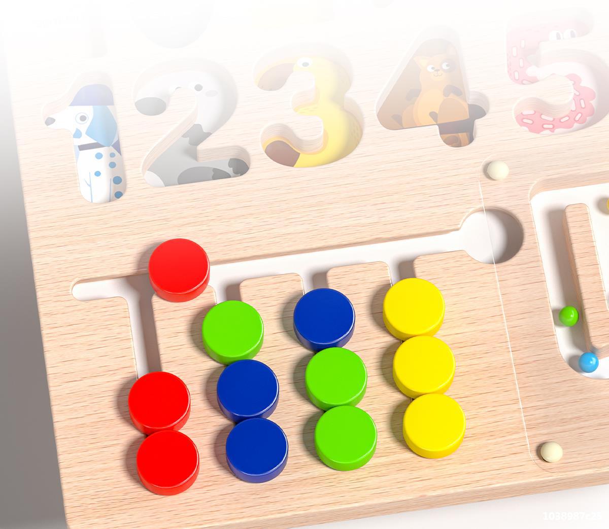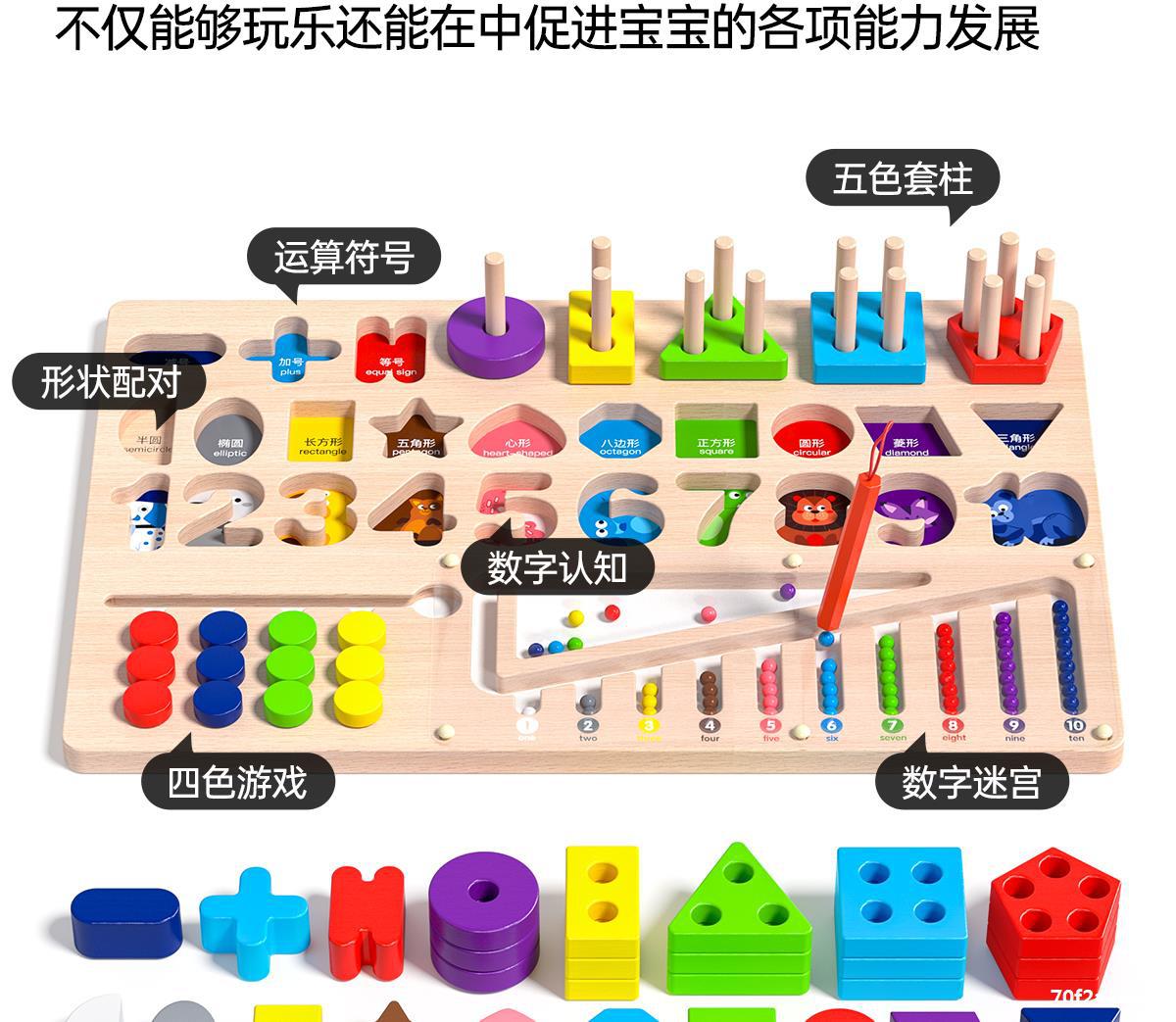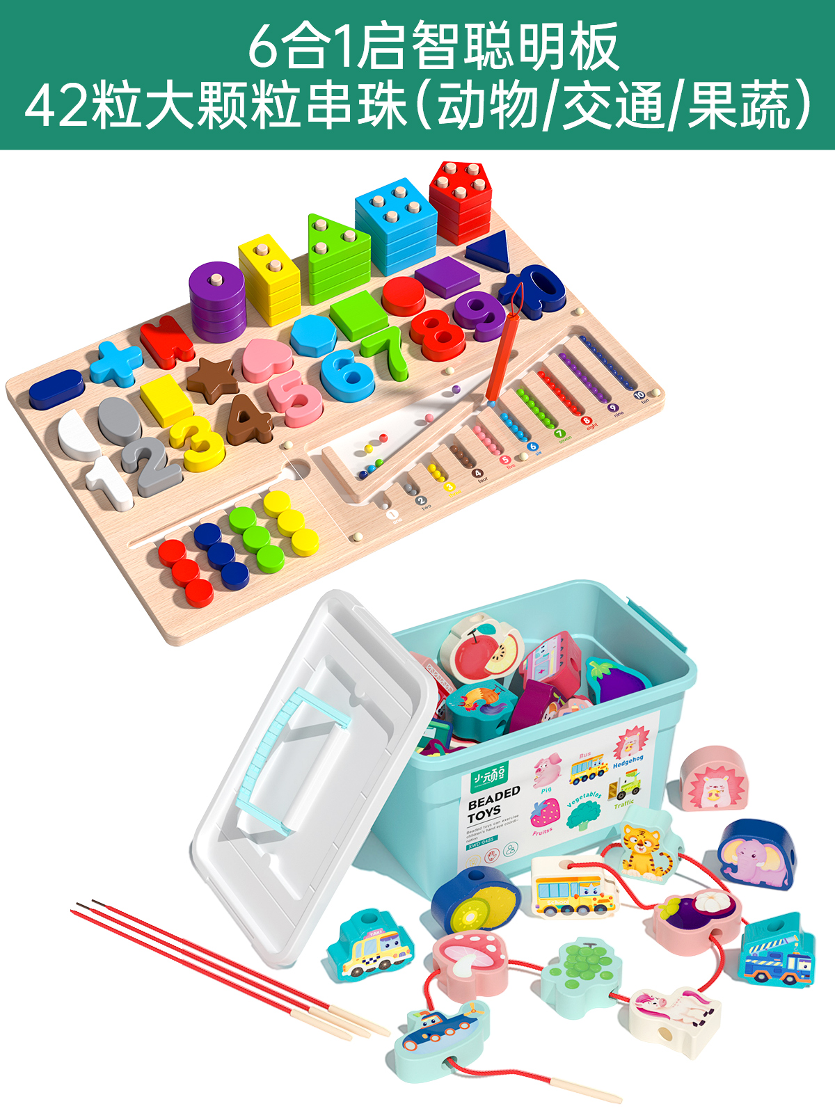 six-in-one montessori smart board +42 large particle beads (animal/traffic/fruit and vegetable)
