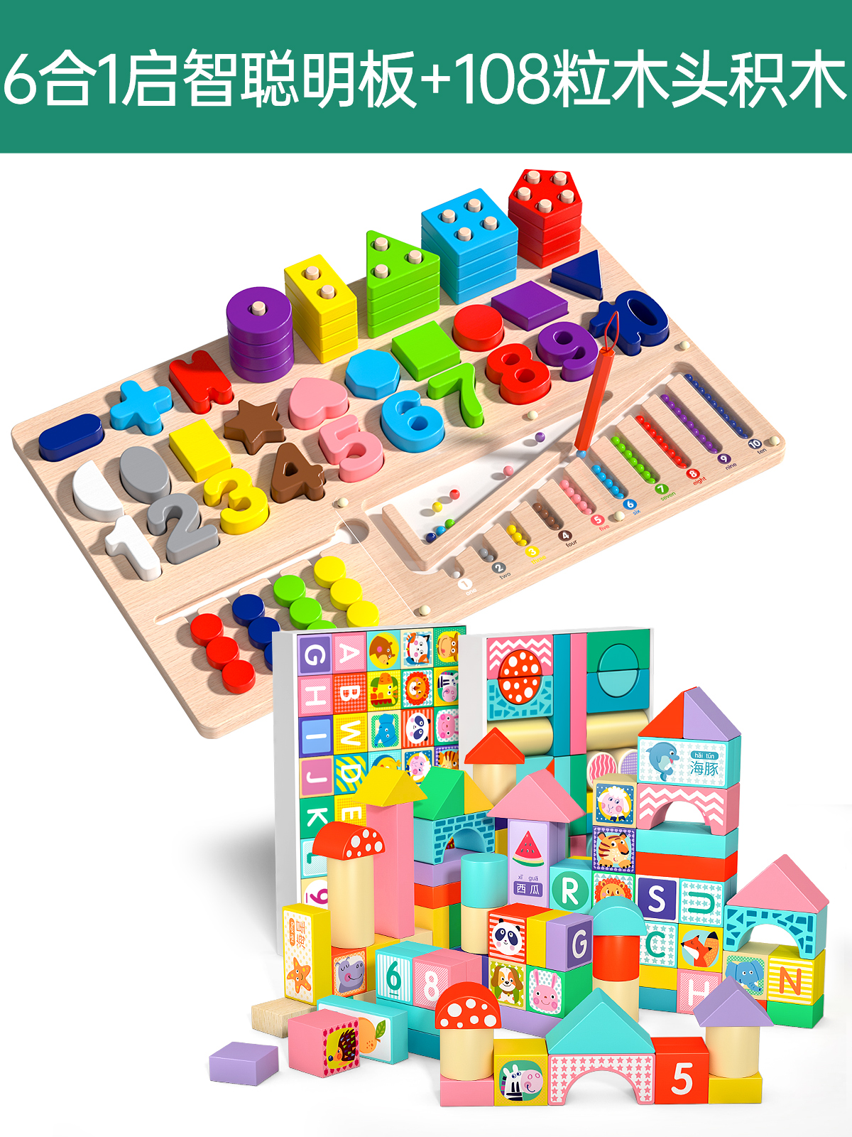 six-in-one montessori smart board +108 tablets wood building blocks