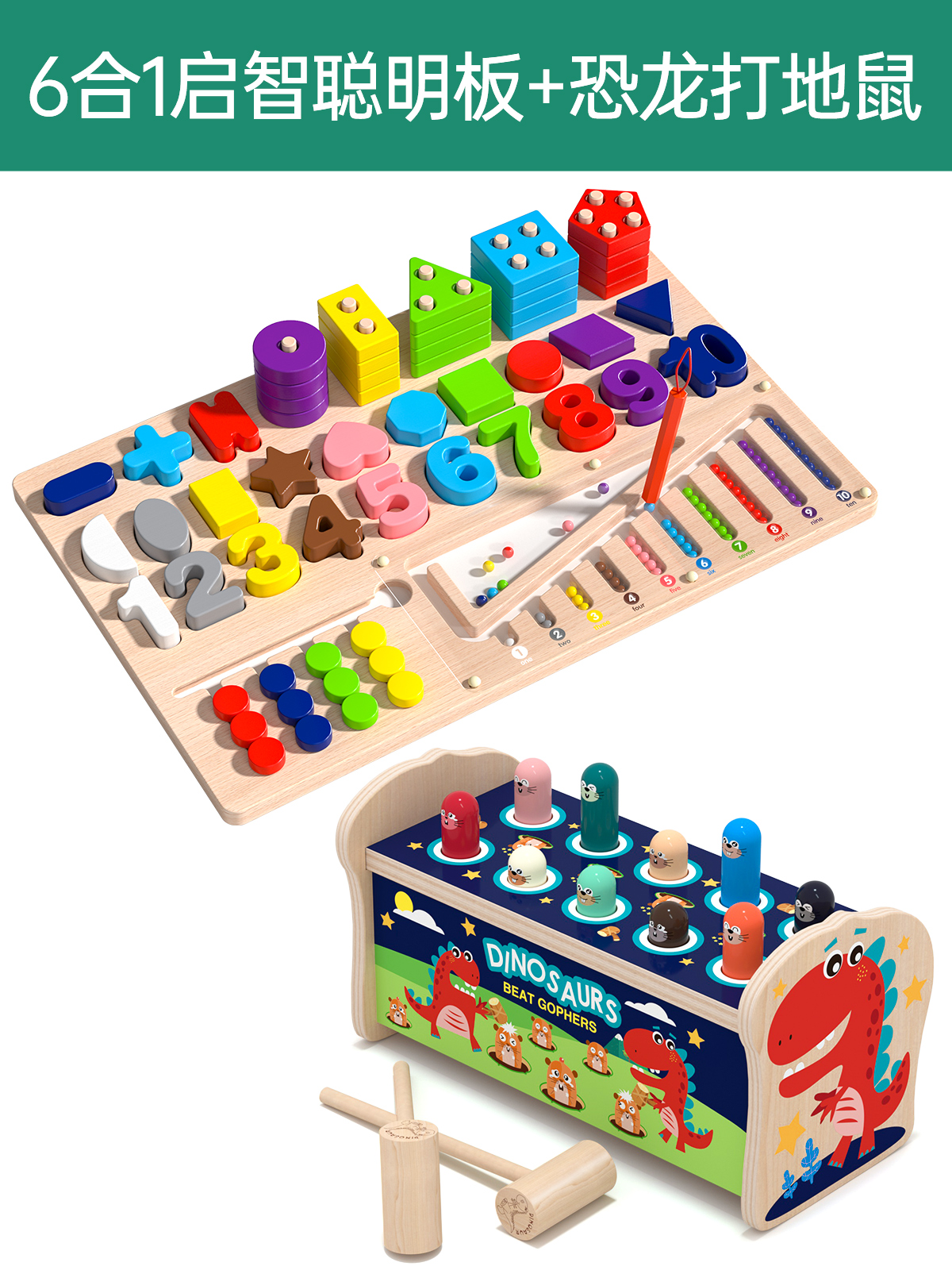 six-in-one montessori smart board + dinosaur whac-a-mole