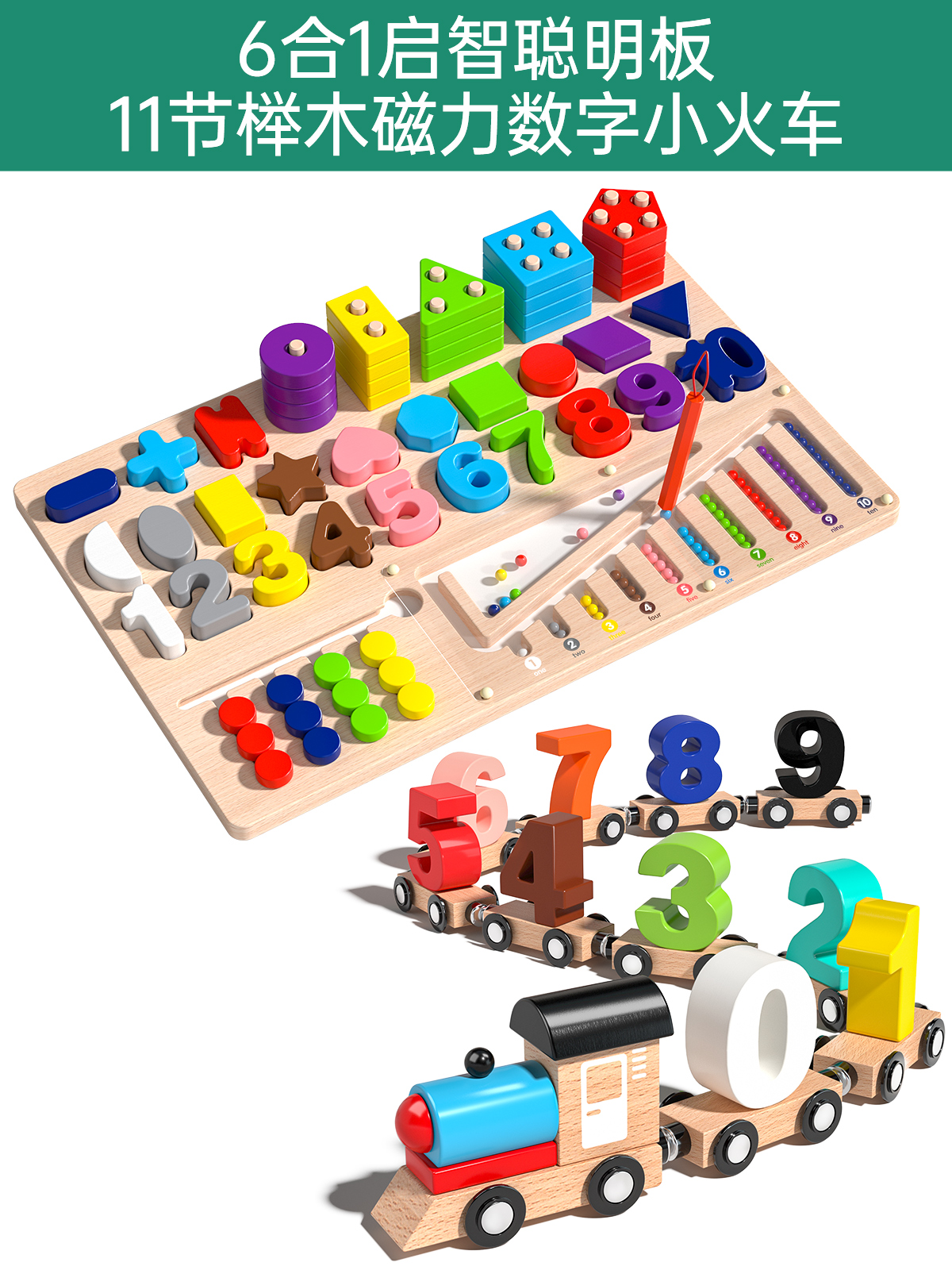 six-in-one montessori smart board +11 beech magnetic digital train