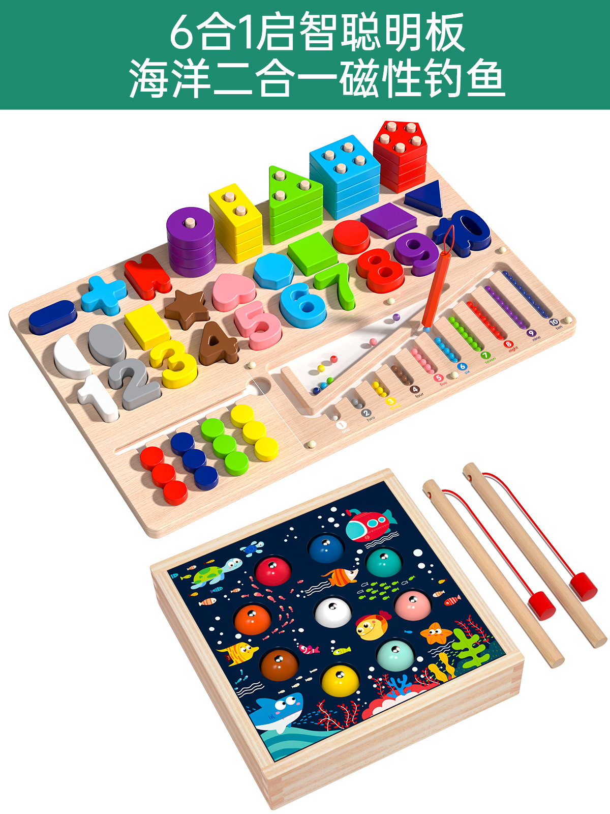 six-in-one montessori smart board + ocean two-in-one magnetic fishing