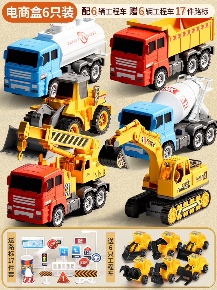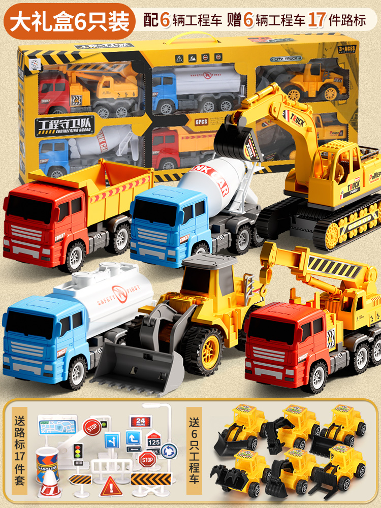 [oversized 6 pcs-e-business version] +(6 engineering vehicles +17 sets of road signs).