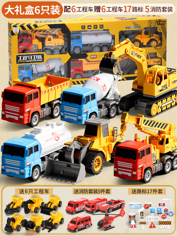 [extra large 6 pcs-gift box] +(6 engineering vehicles +17 road signs +5 fire protection)