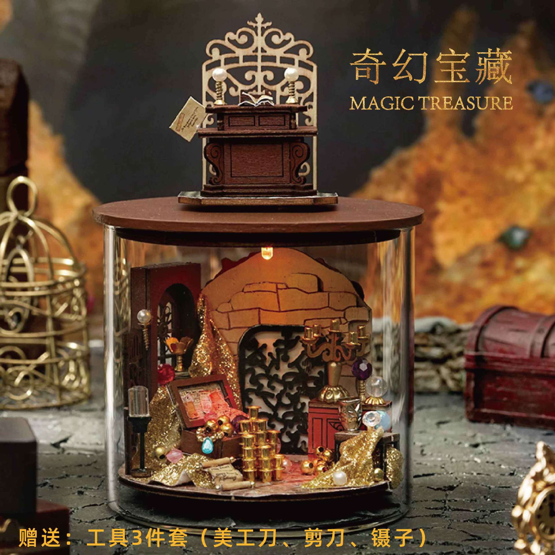 fantasy treasure + tools + glue + led light