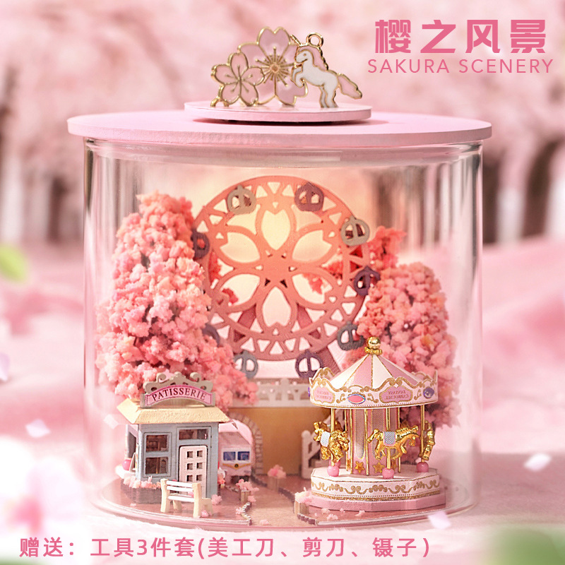 sakura landscape + tools + glue + led lights