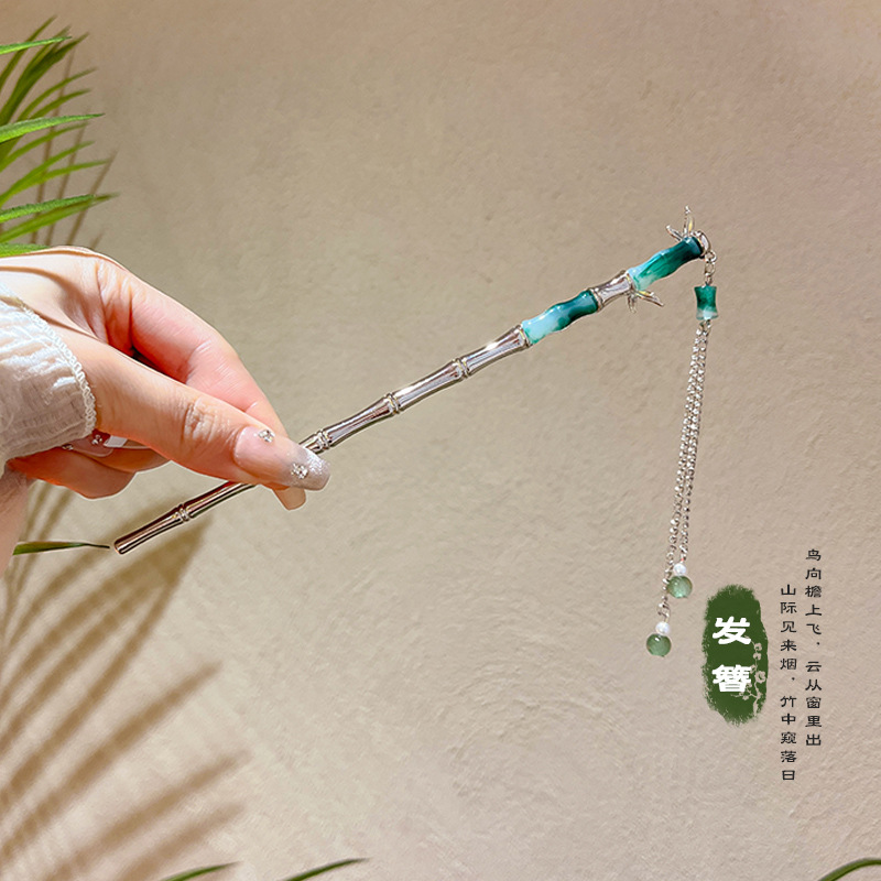 green bamboo tassel hairpin