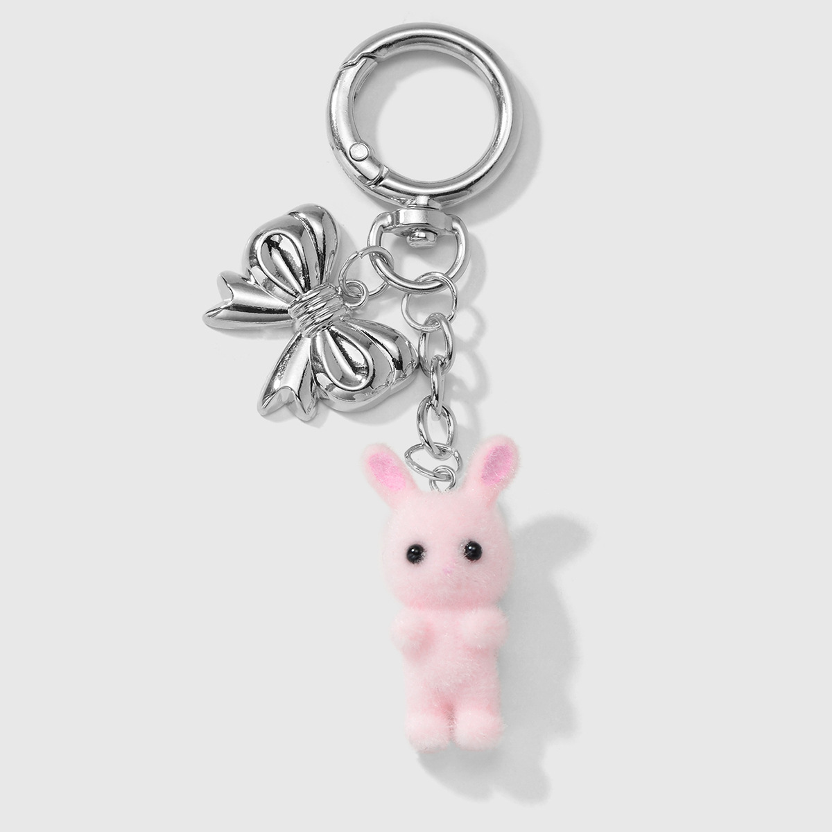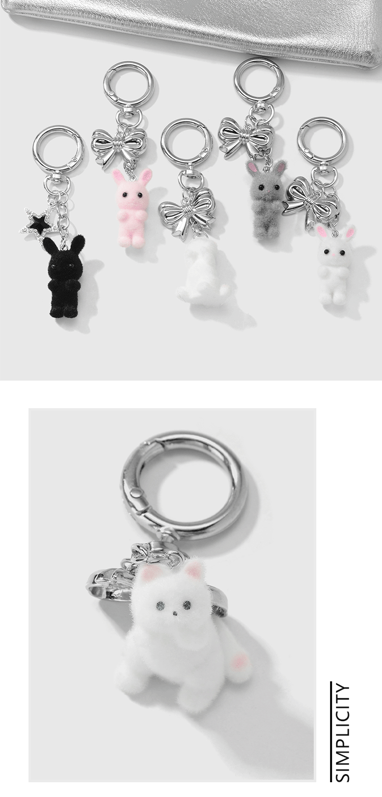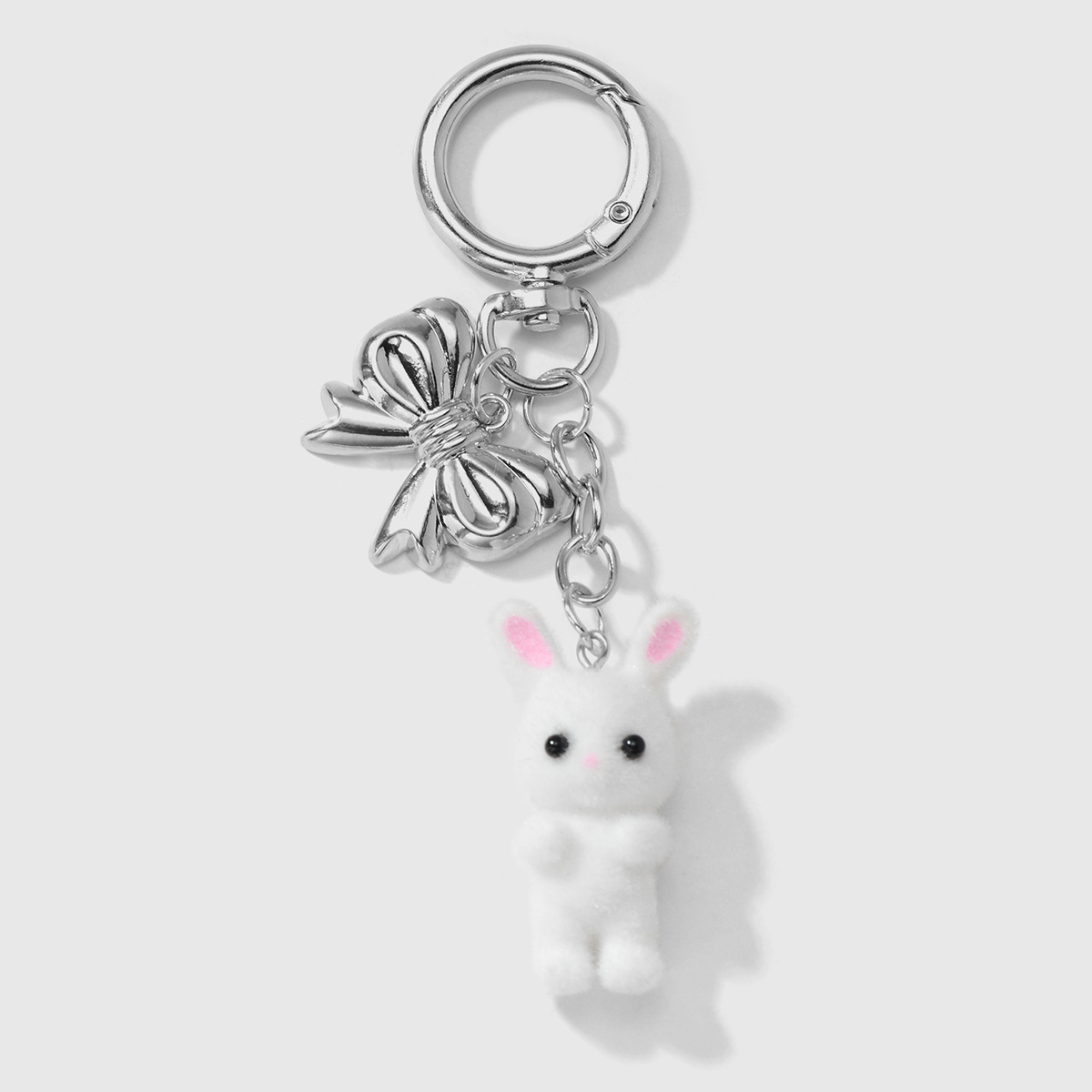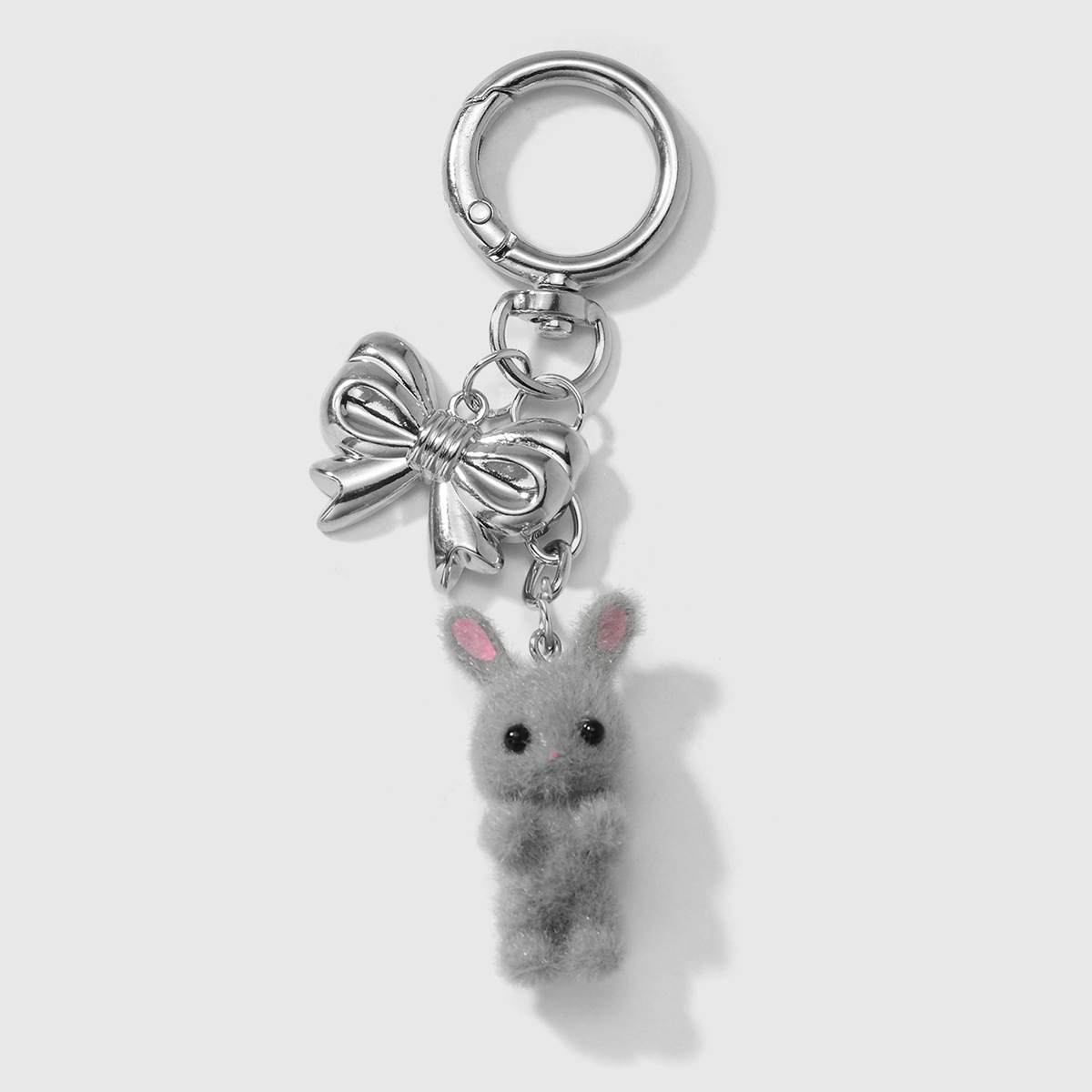 gray rabbit bow pendant keychain 1
