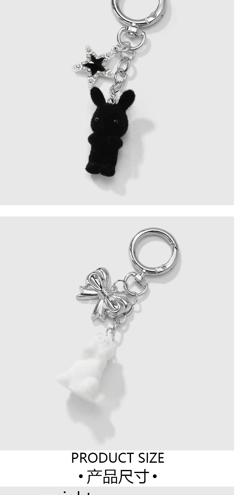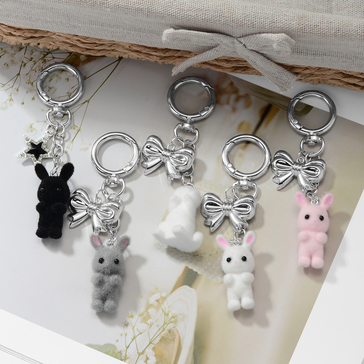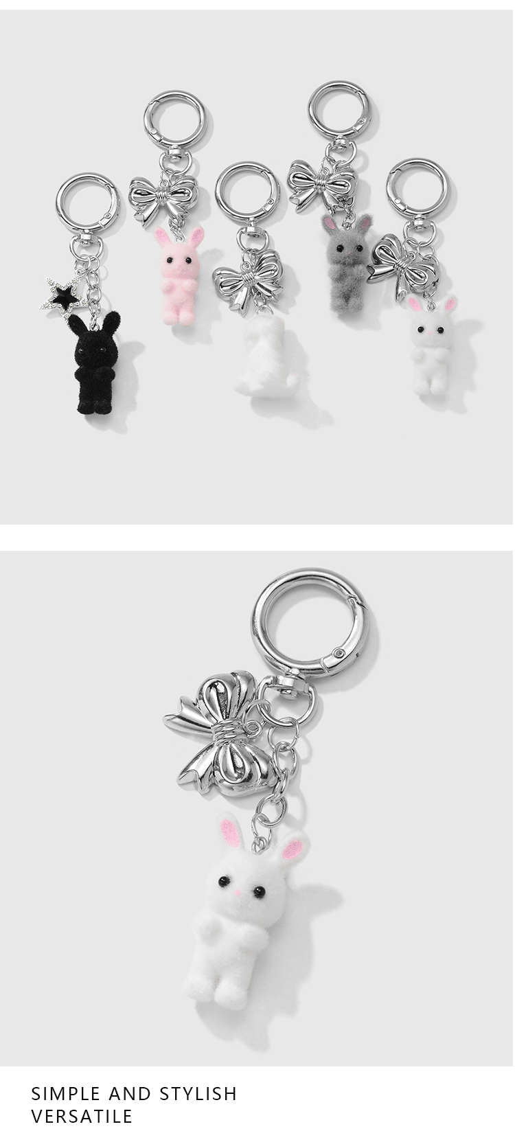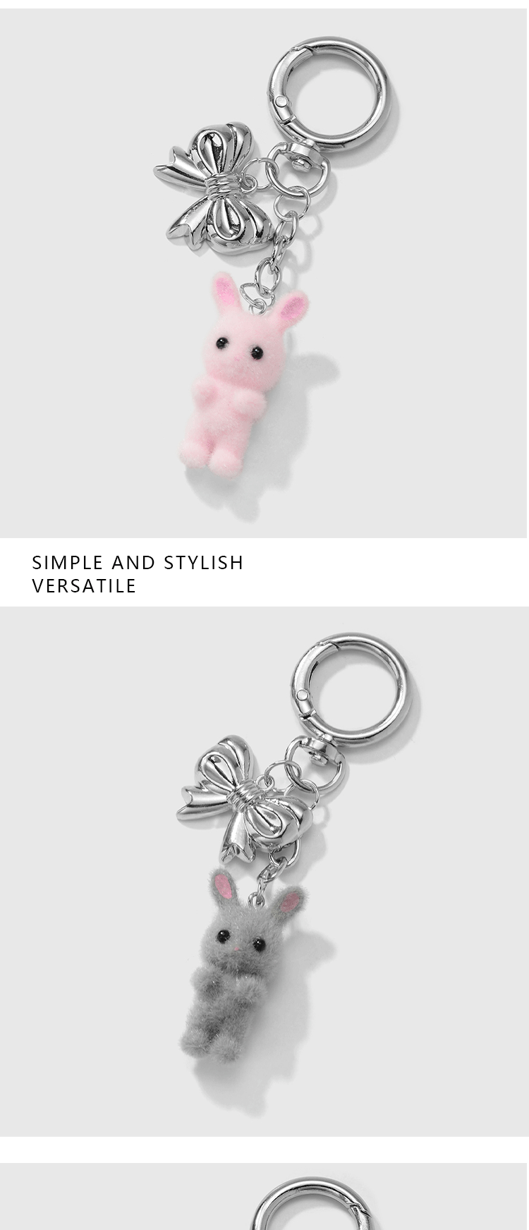 gray rabbit bow pendant keychain 1