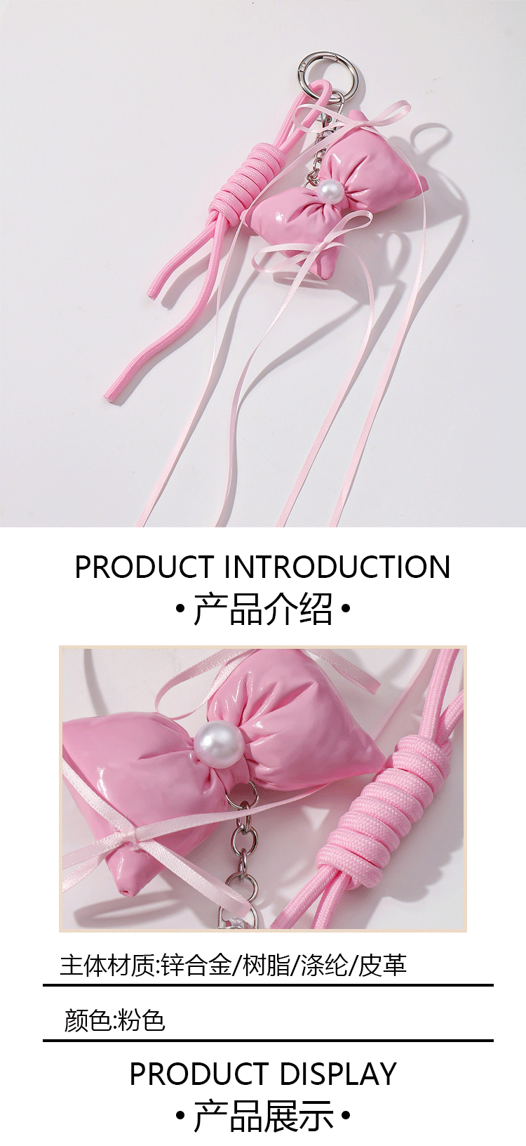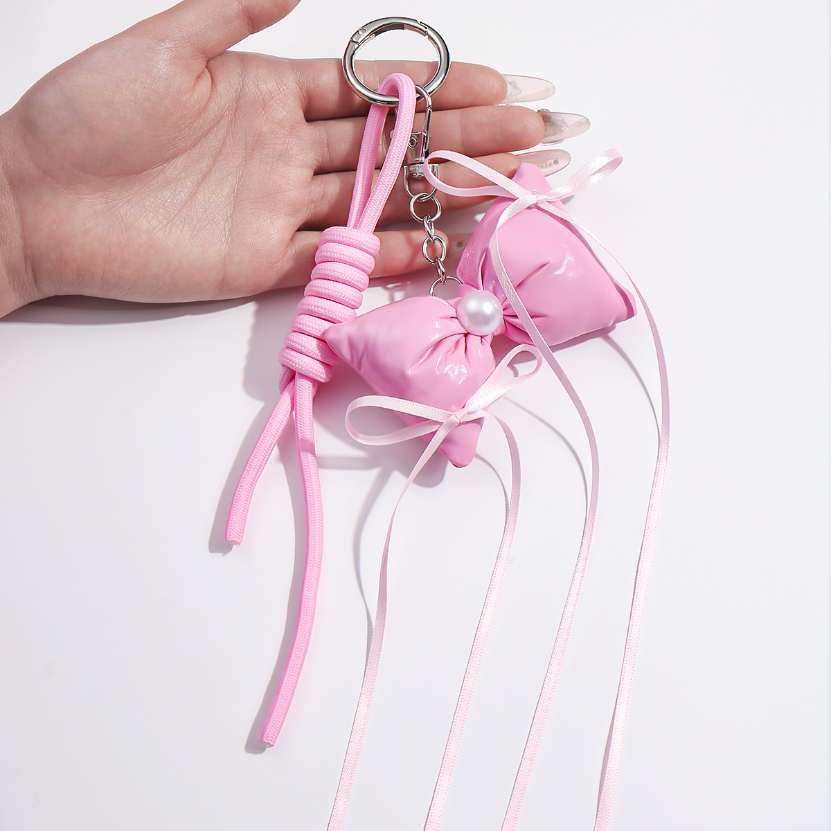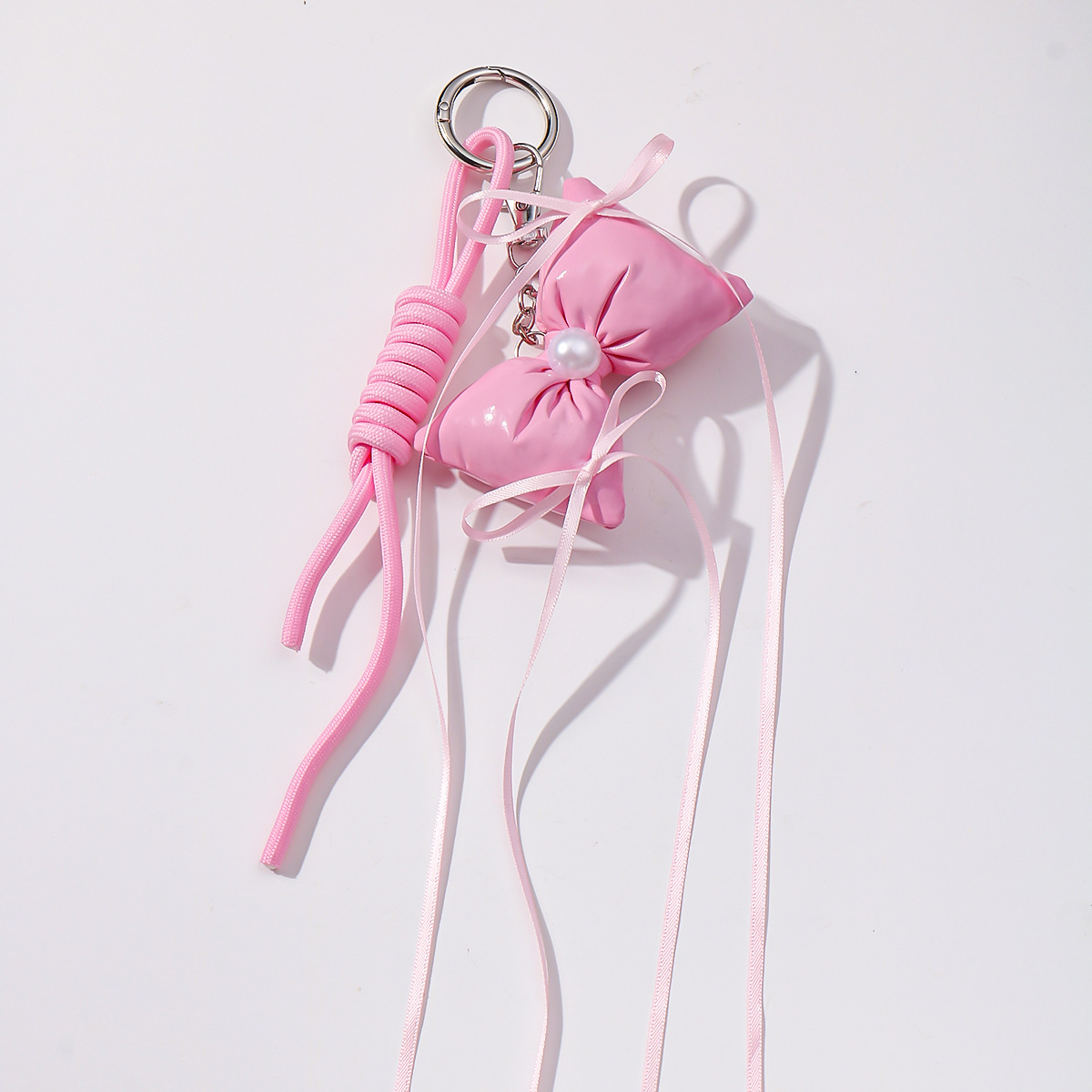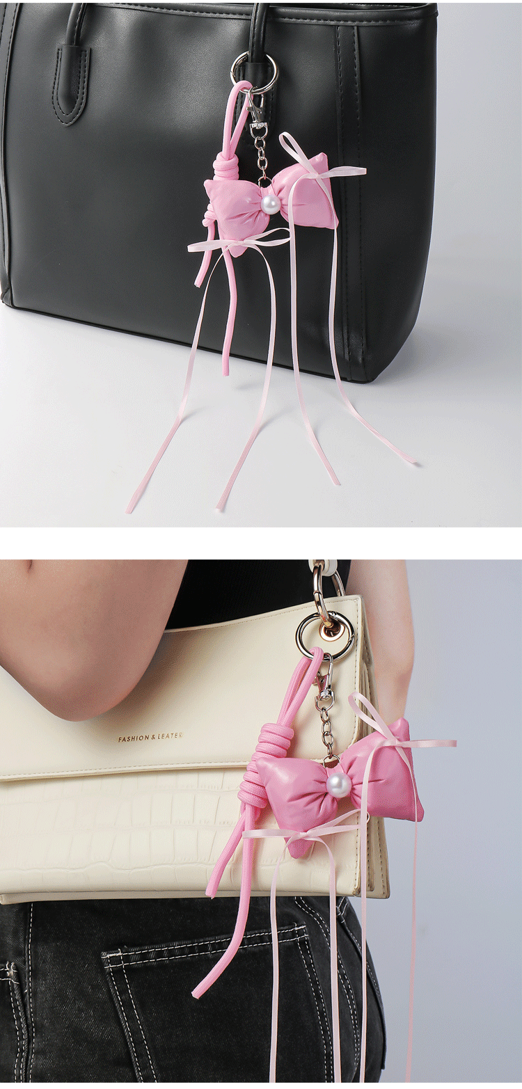 one pink leather bow keychain