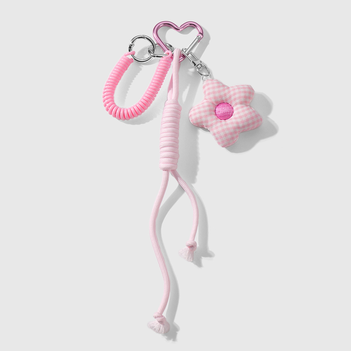 one pink plaid flower keychain