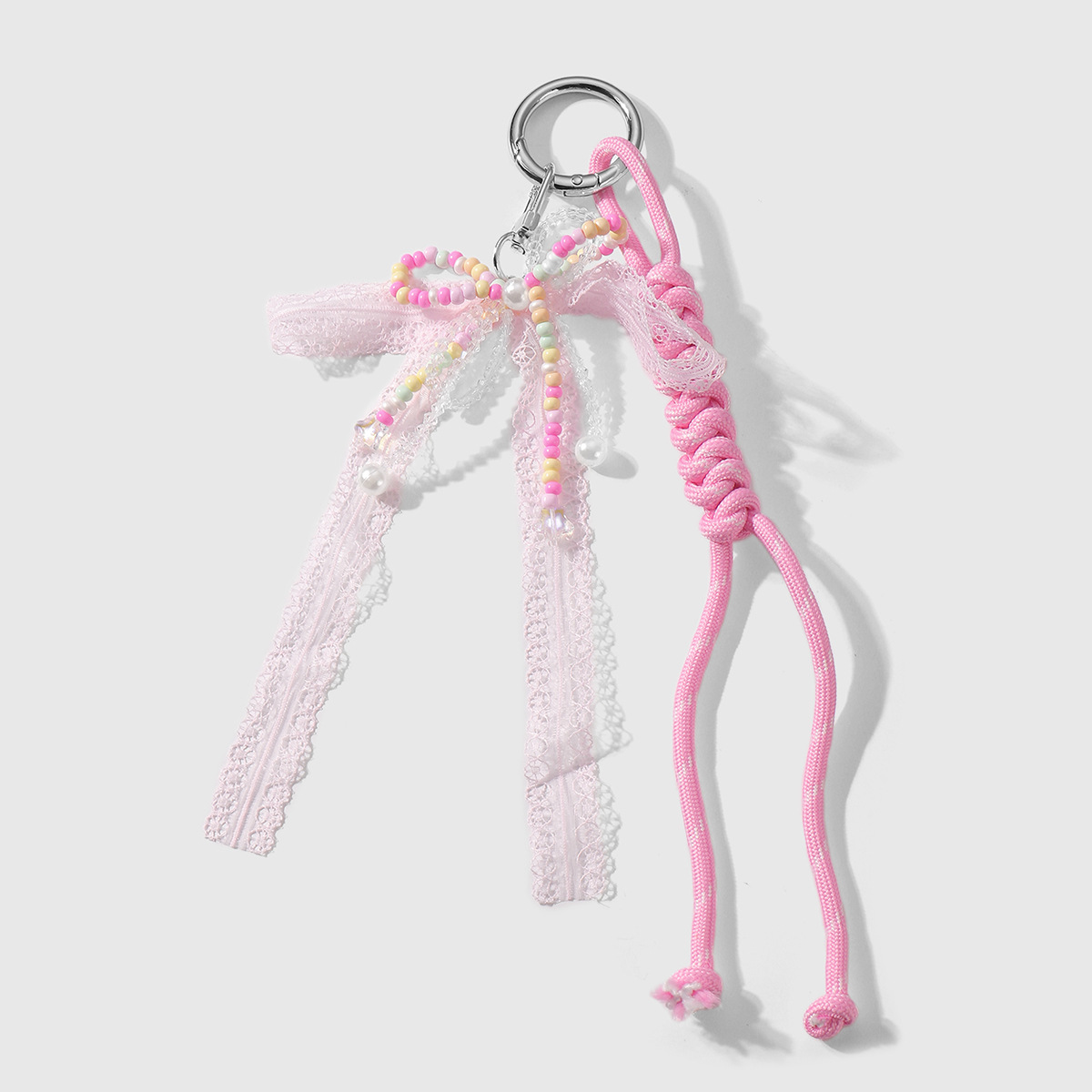 one color beaded mesh bow keychain