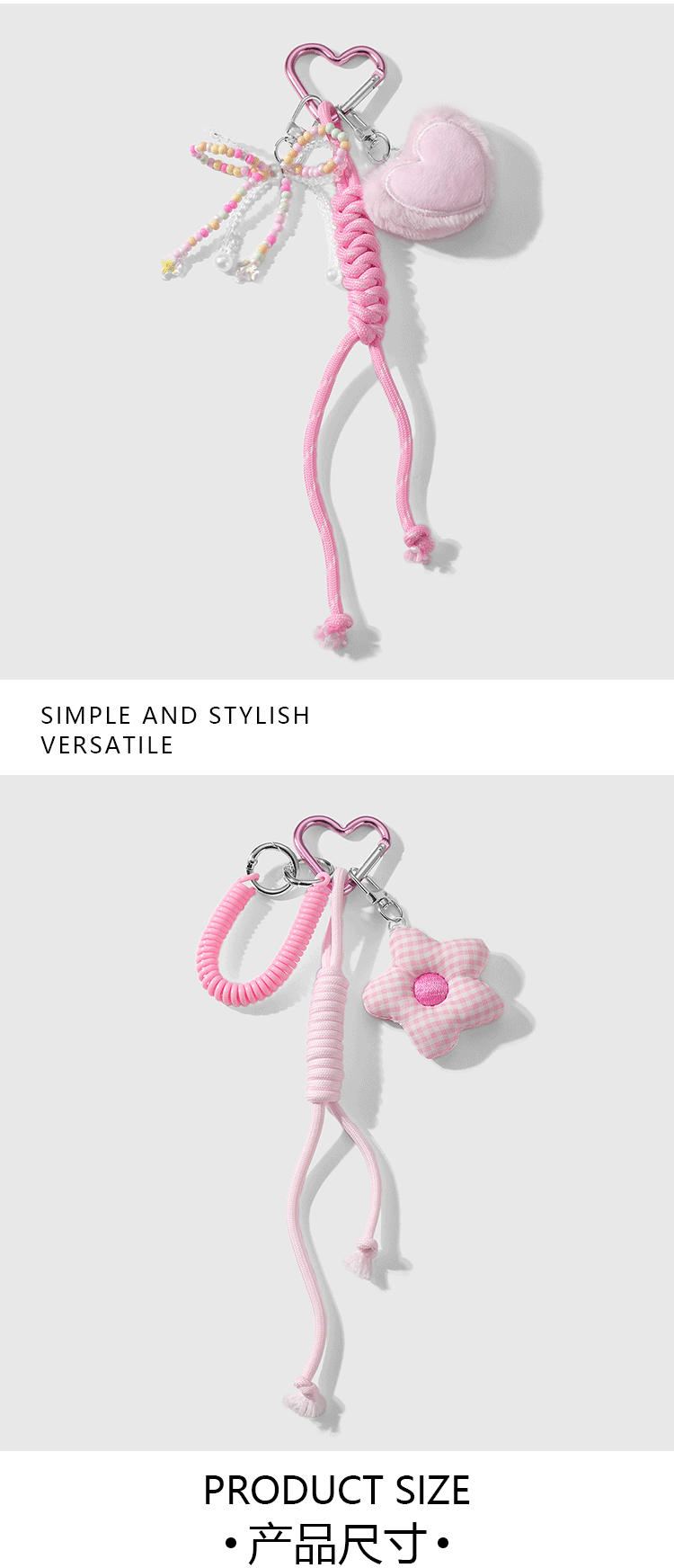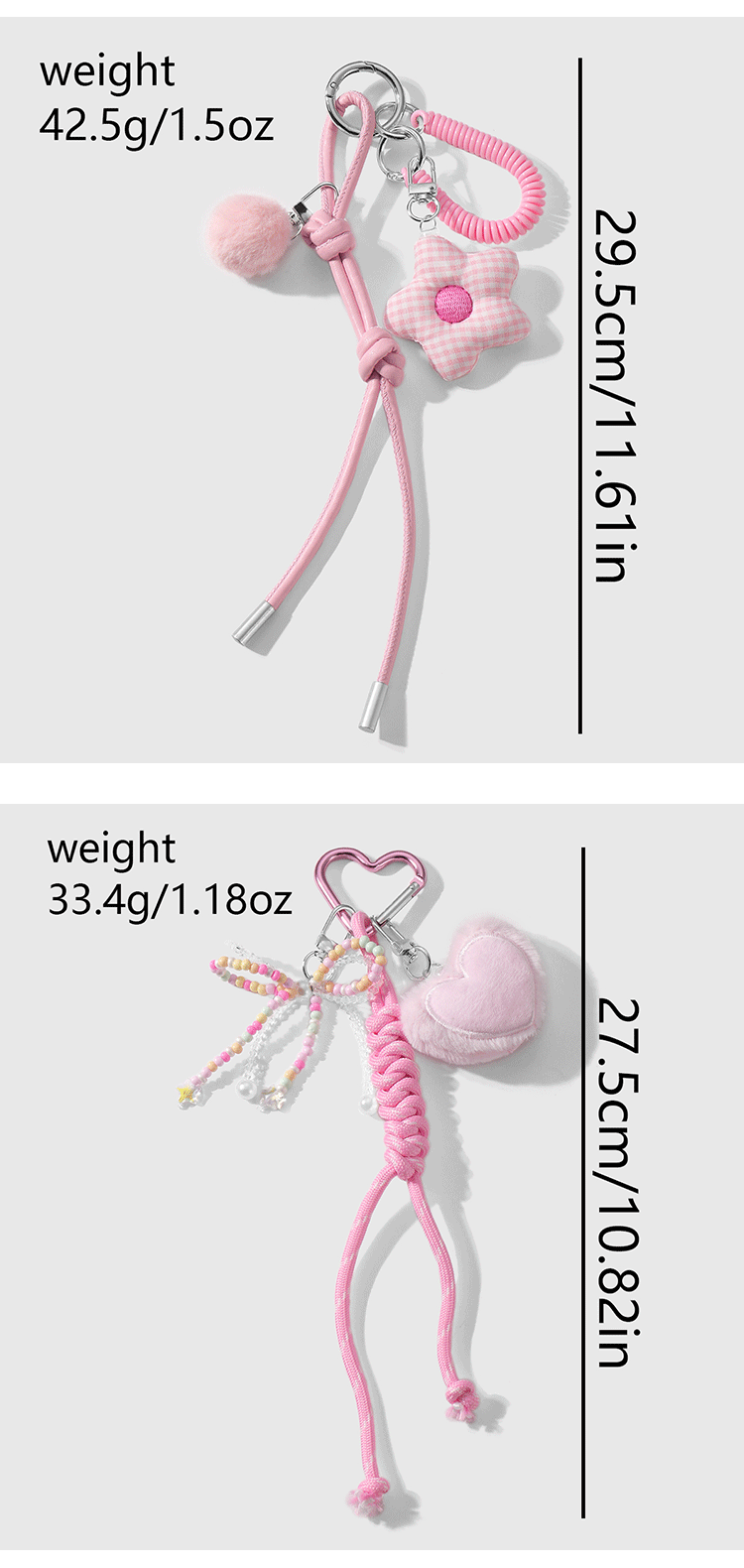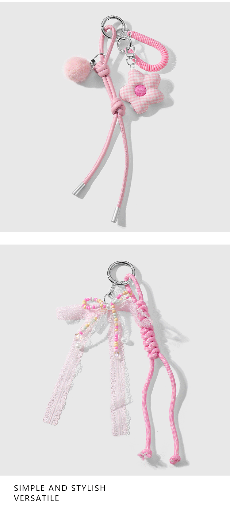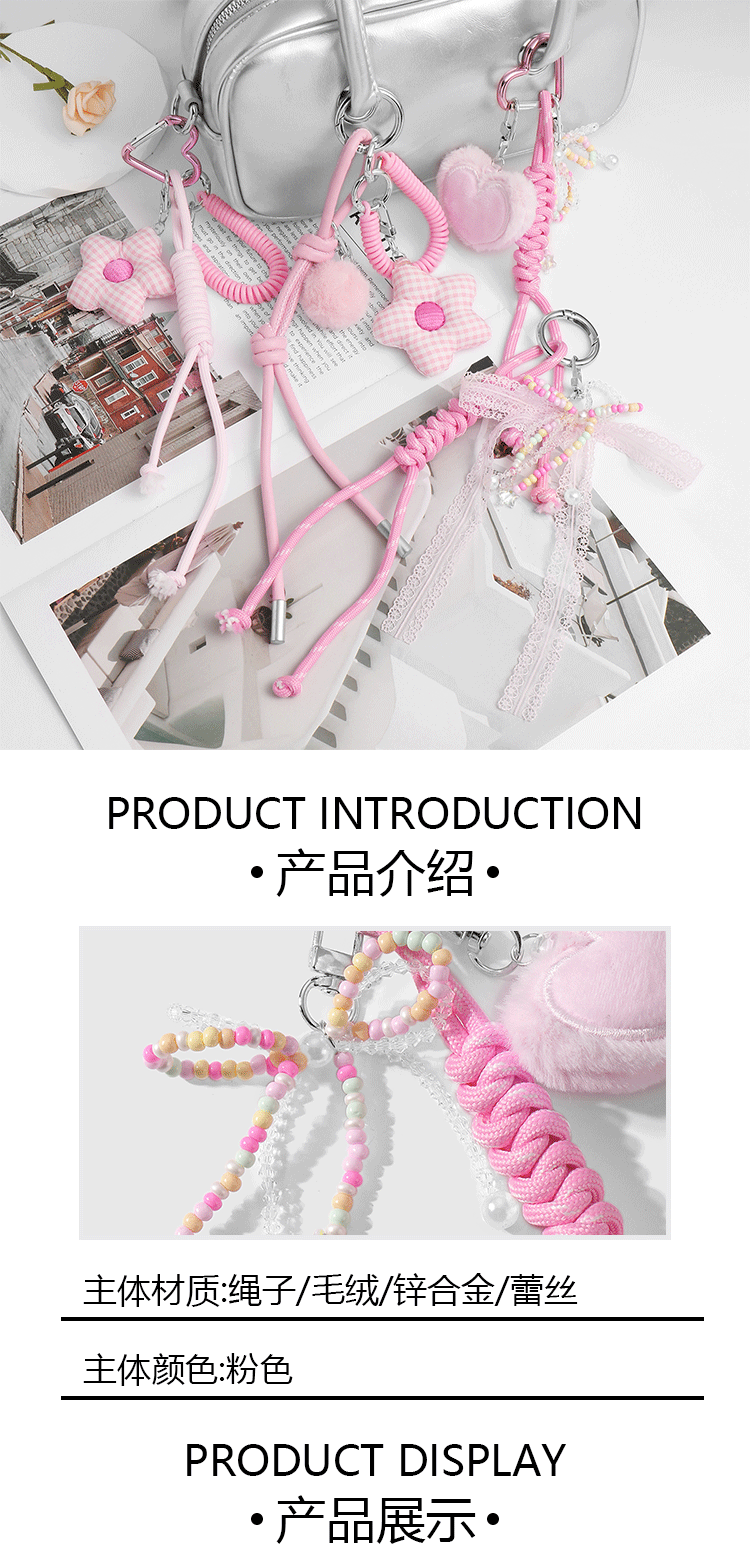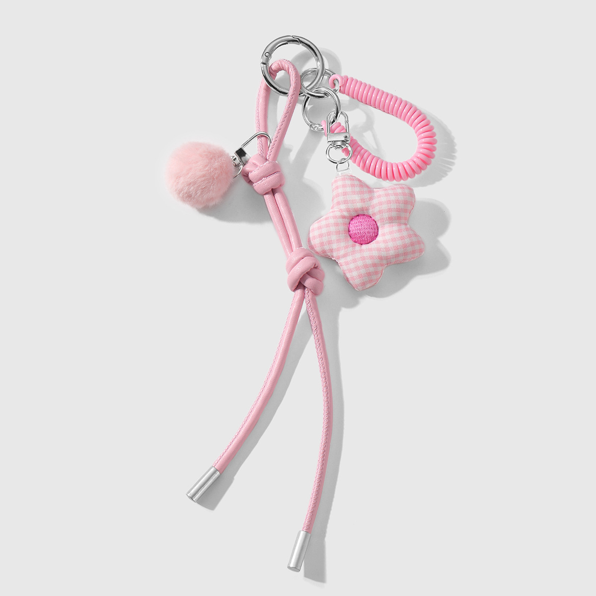 one pink fur ball plaid flower keychain