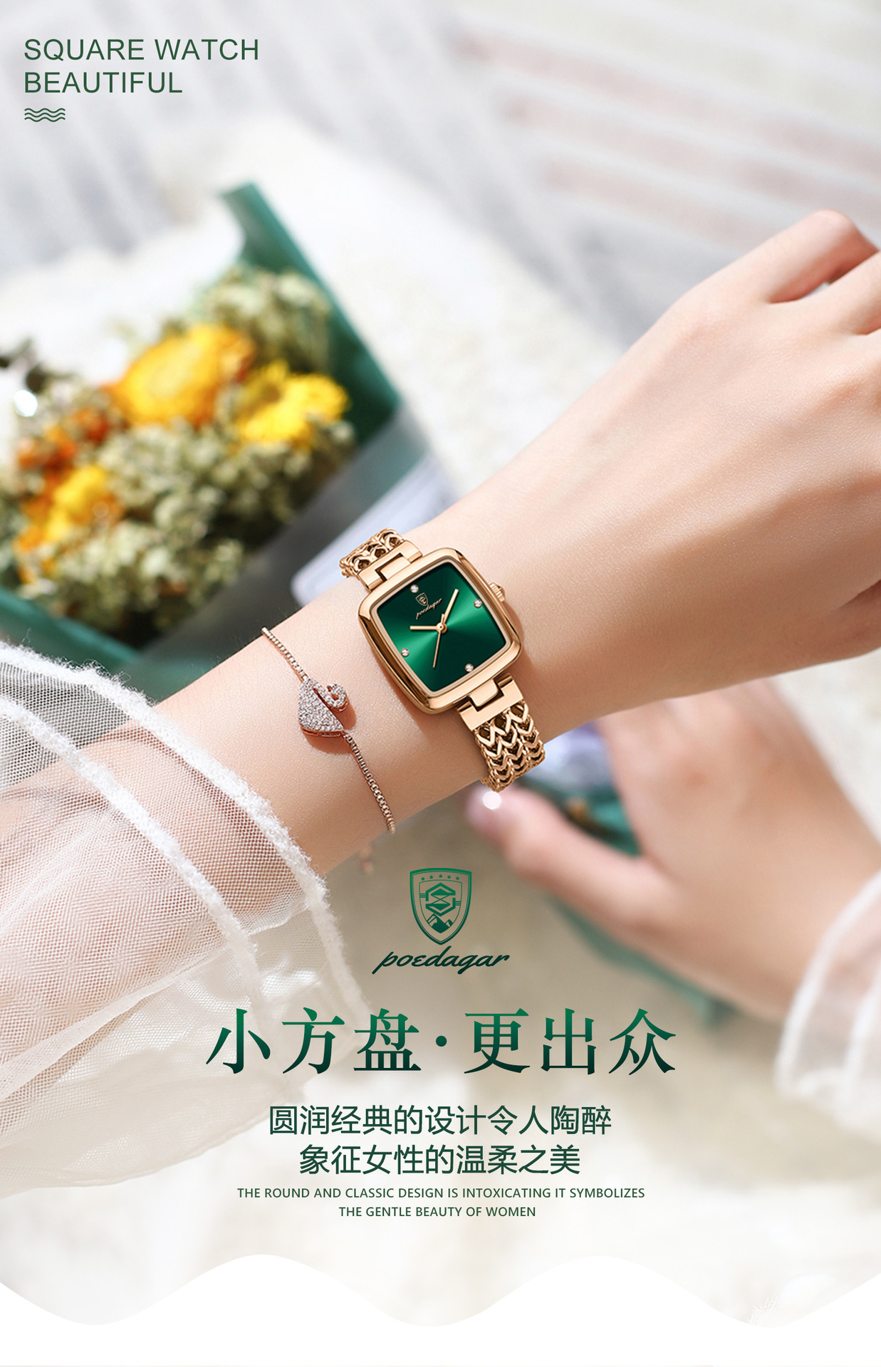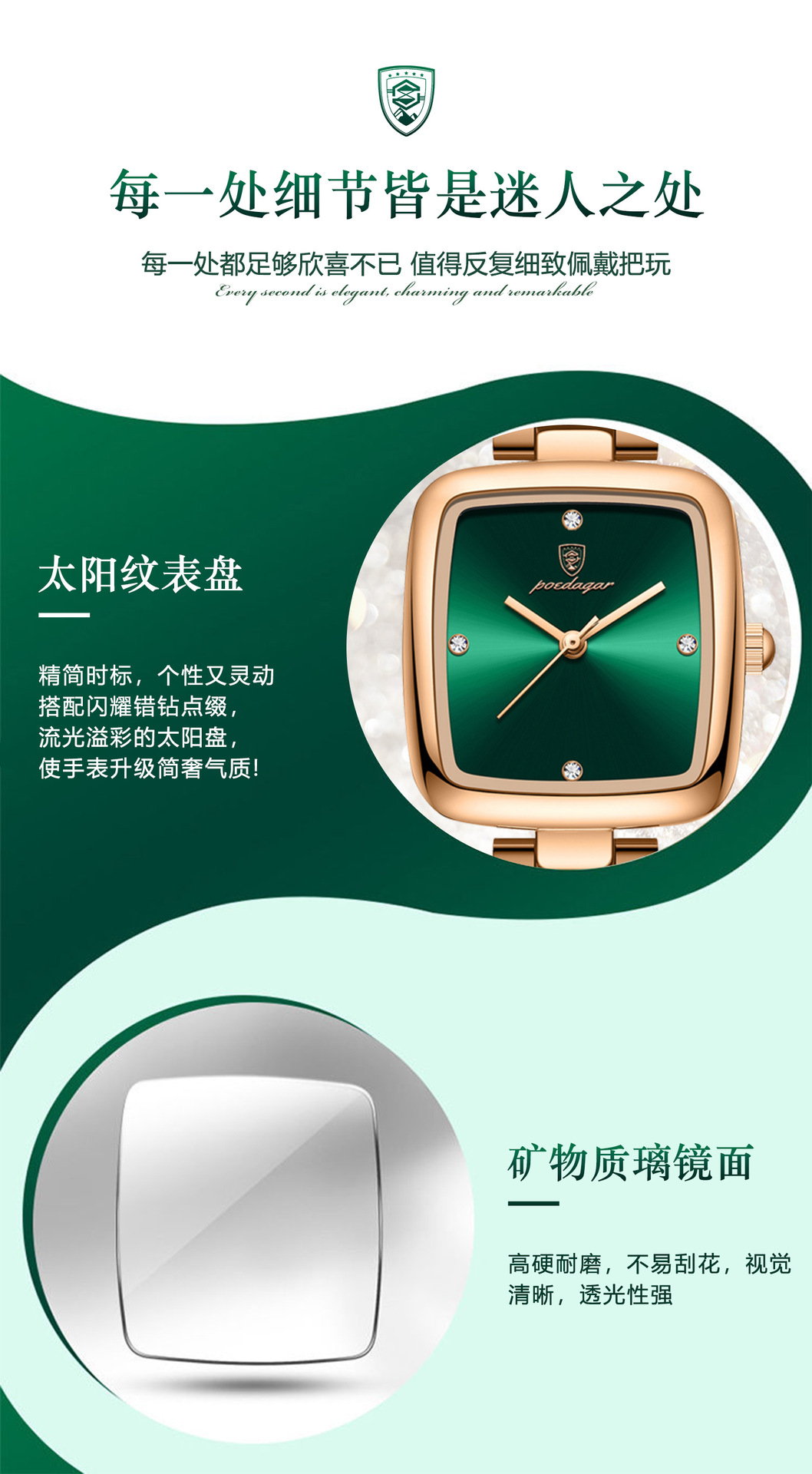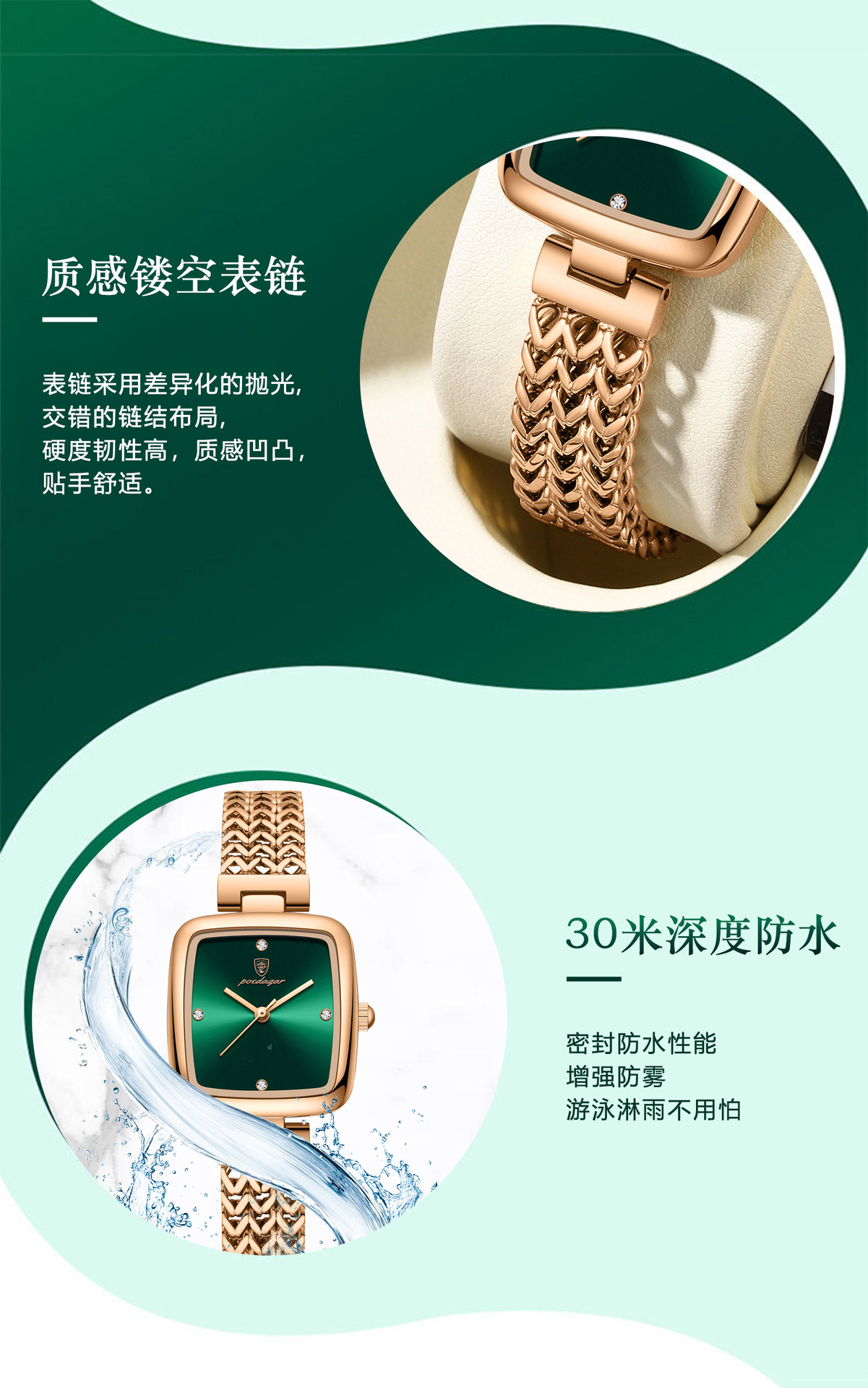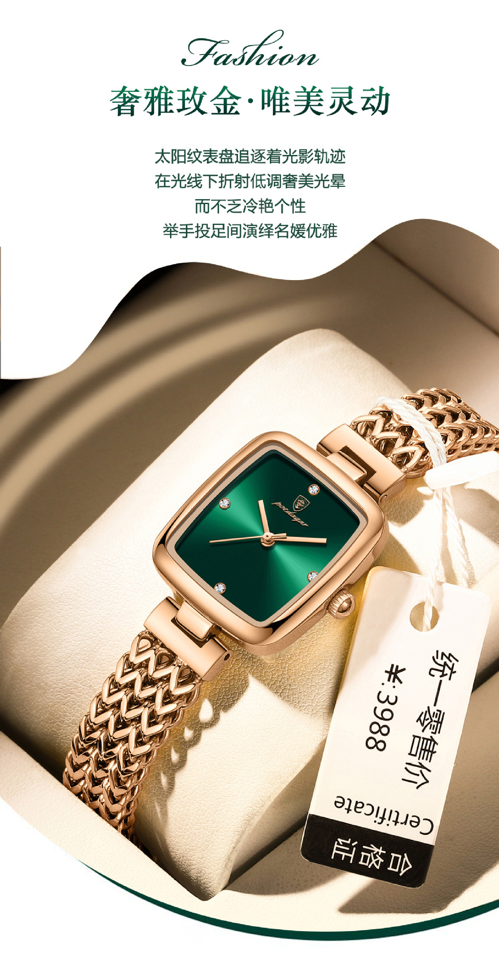 768 rose gold green surface steel belt