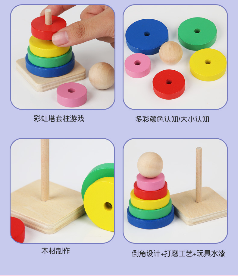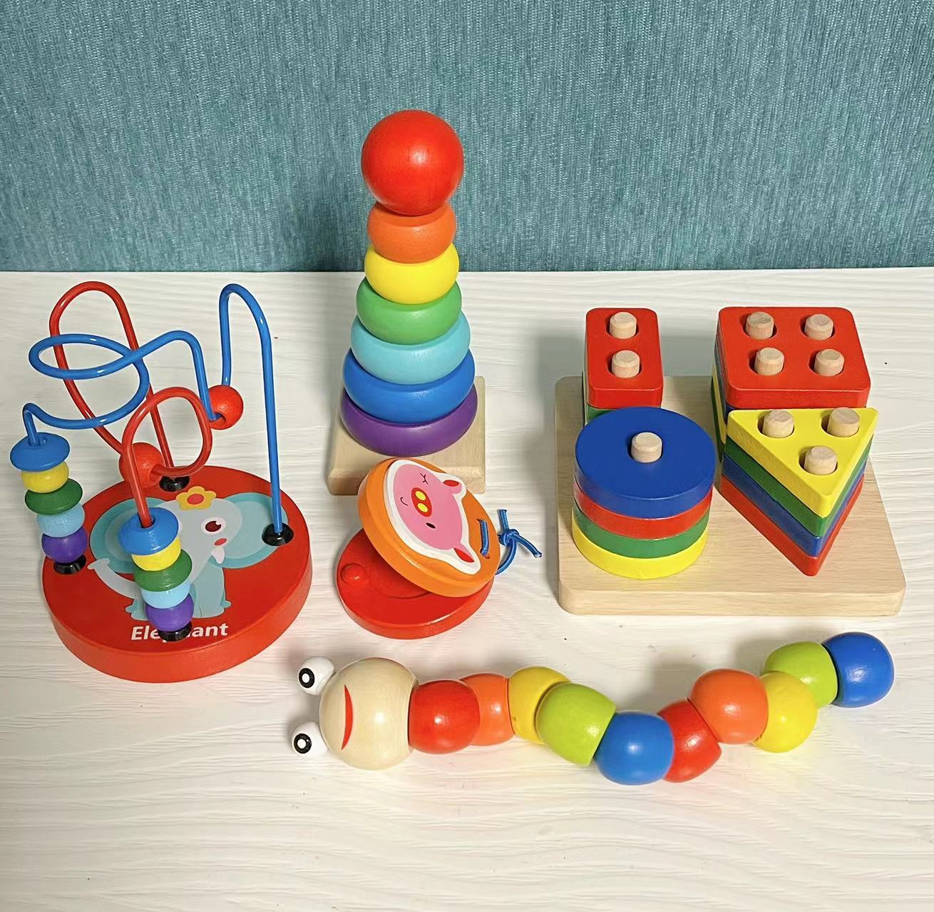 5-piece set [rainbow tower + toy worm + four sets of pillars + small bead-stringing toy + castanet]]