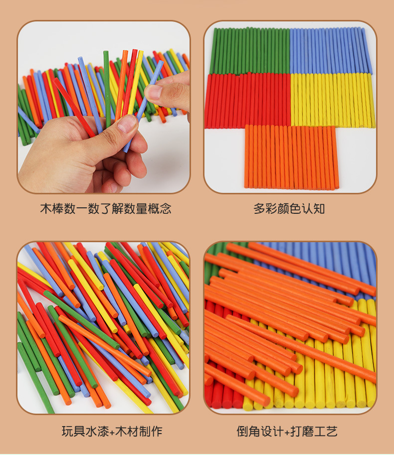 4 = toy worm + small bead-stringing toy + four sets of pillars + music box