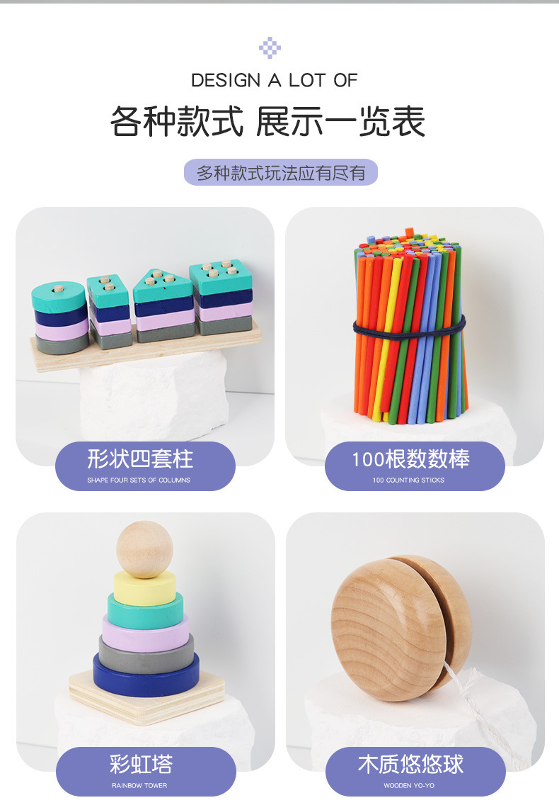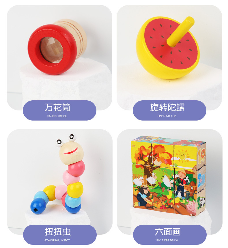 8-piece set [rainbow tower + toy worm + small bead-stringing toy + four sets of pillars + music box + beaded clock + jigsaw puzzle + small puzzle]]