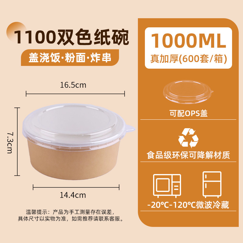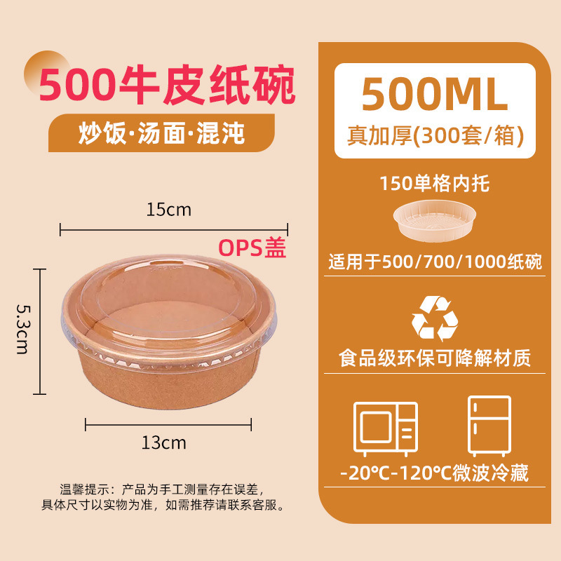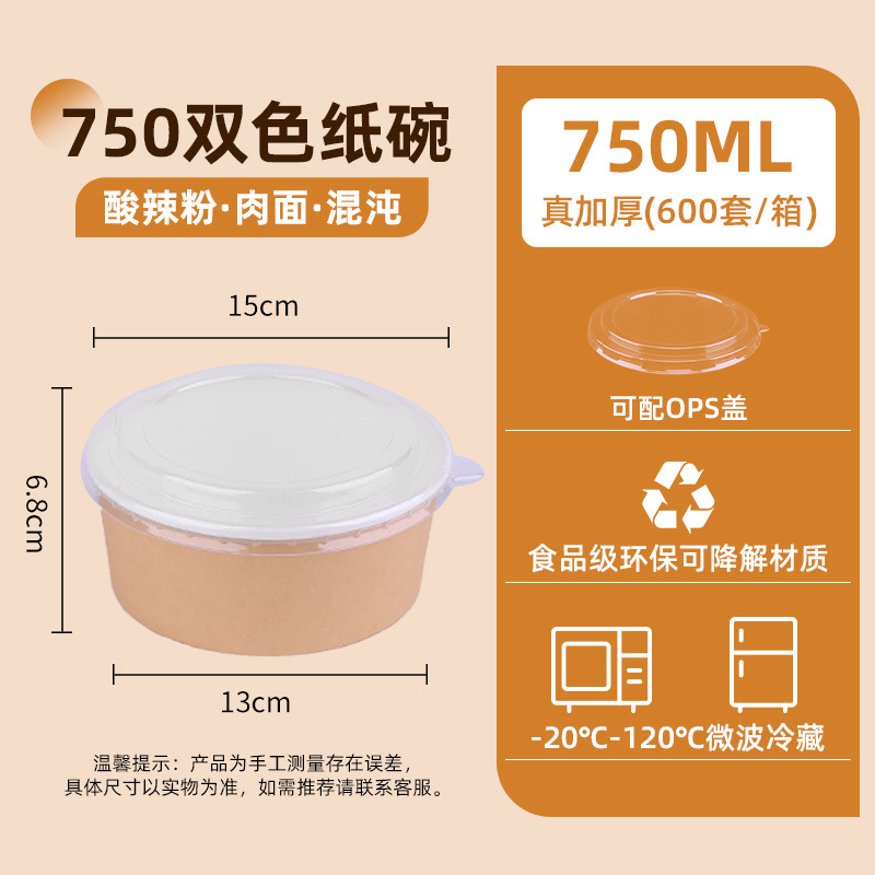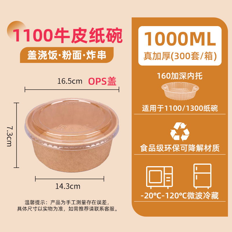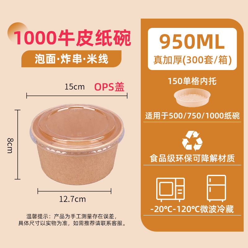 1000 two-color kraft paper bowl + ops cover (300 sets/box) single