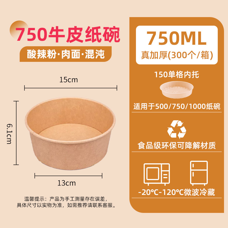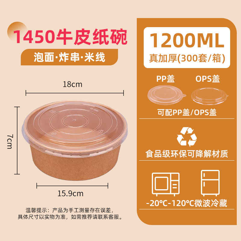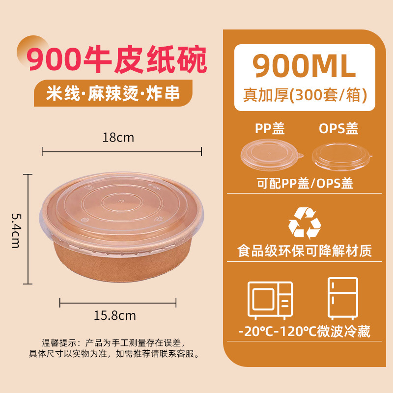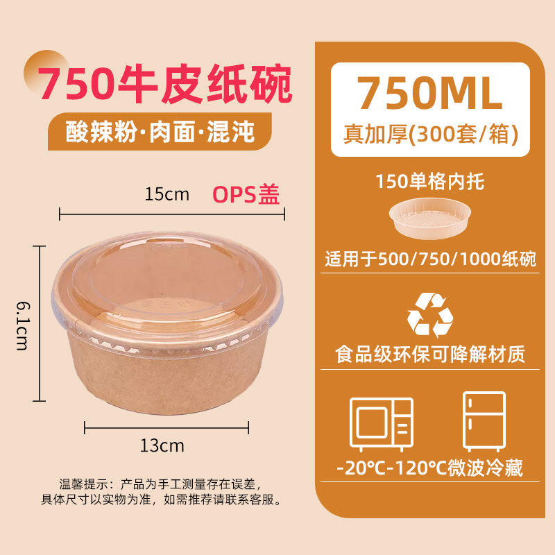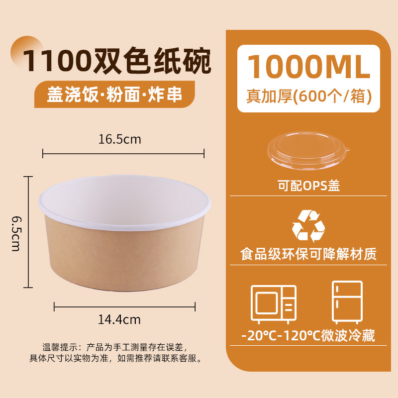 1000 two-color kraft paper bowl + ops cover (300 sets/box) single