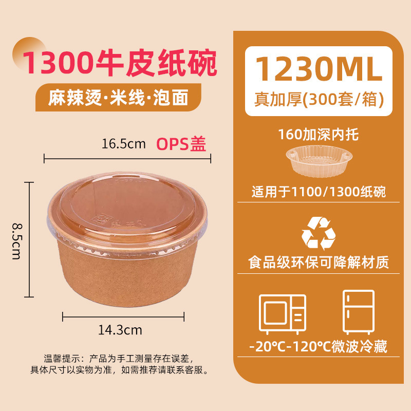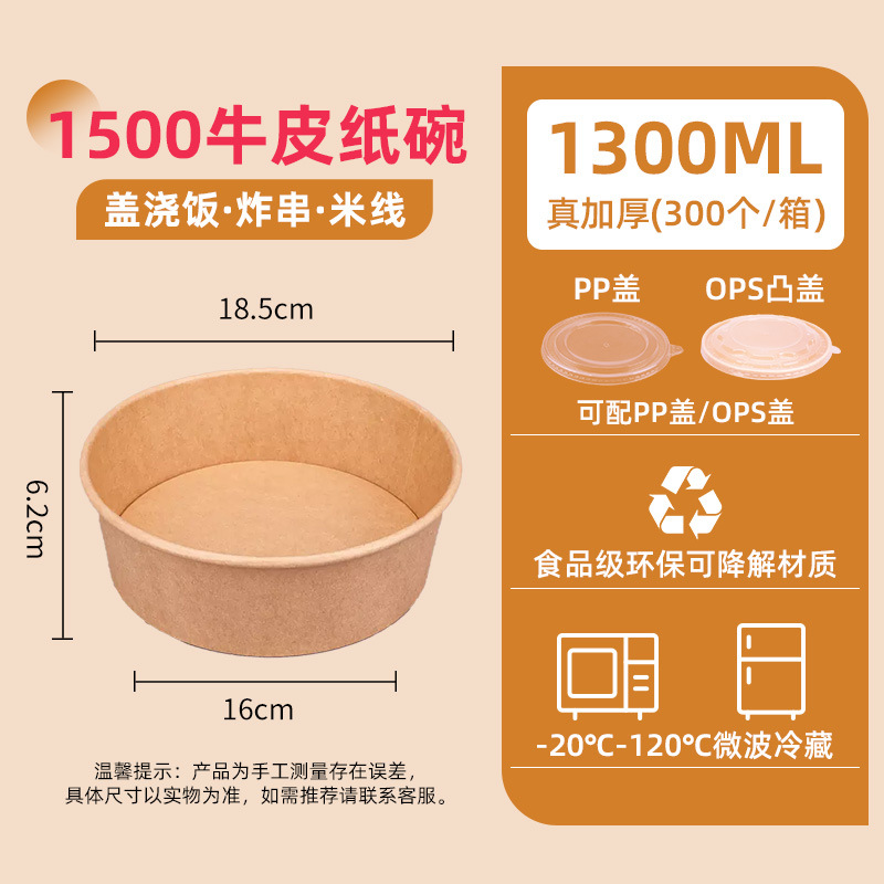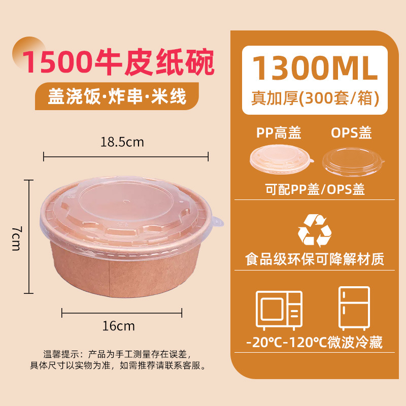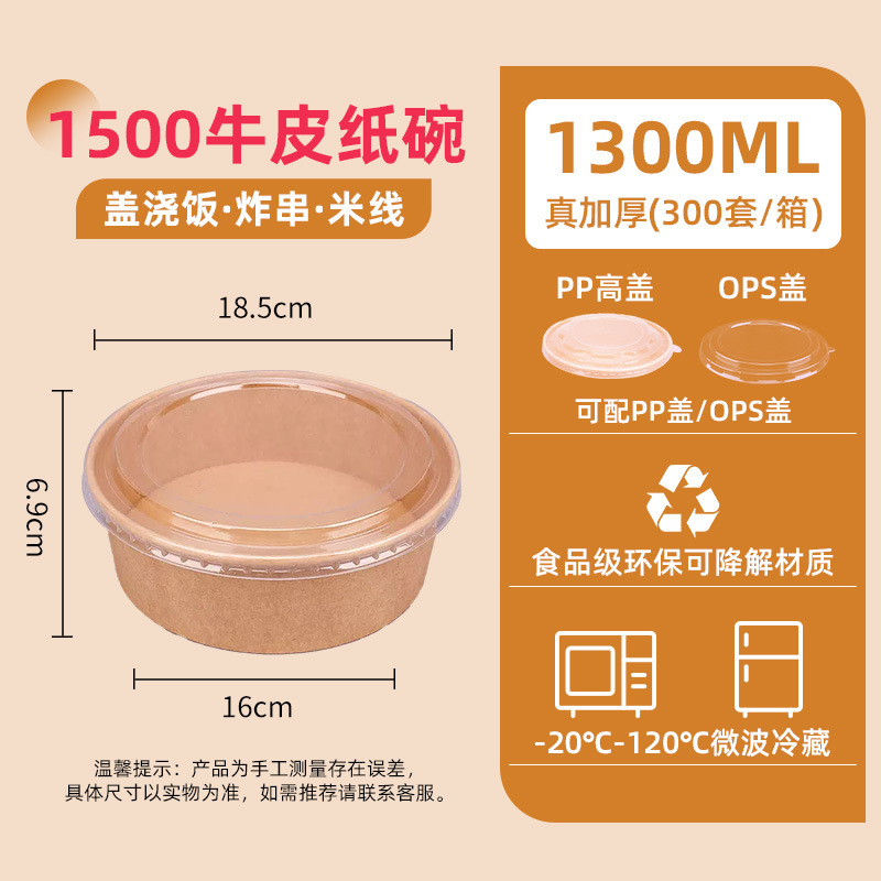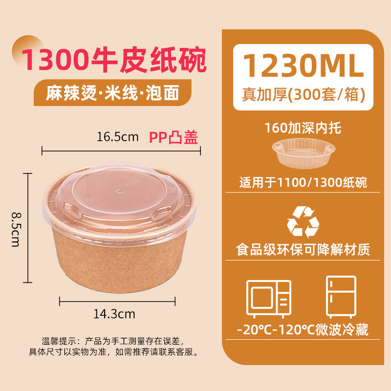 1300 kraft paper bowl + pp cover 300 sets