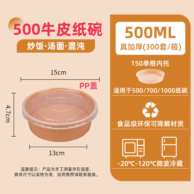 500 kraft paper bowl + pp cover 300 sets