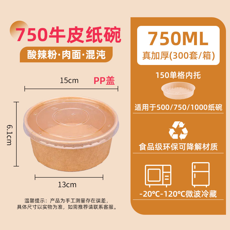 750 kraft paper bowl + pp cover 300 sets