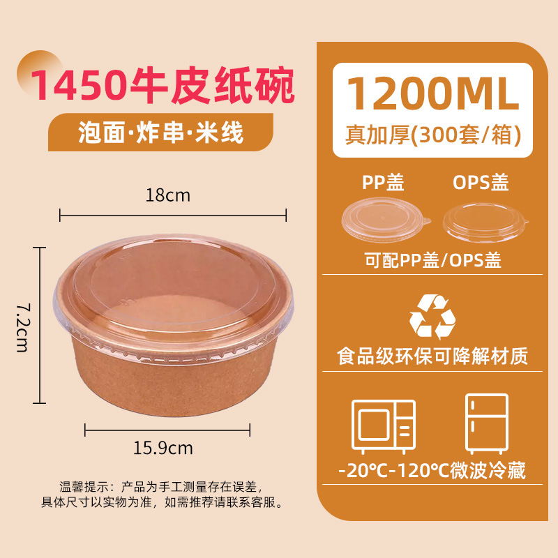 1450 kraft paper bowl + pp cover 300 sets