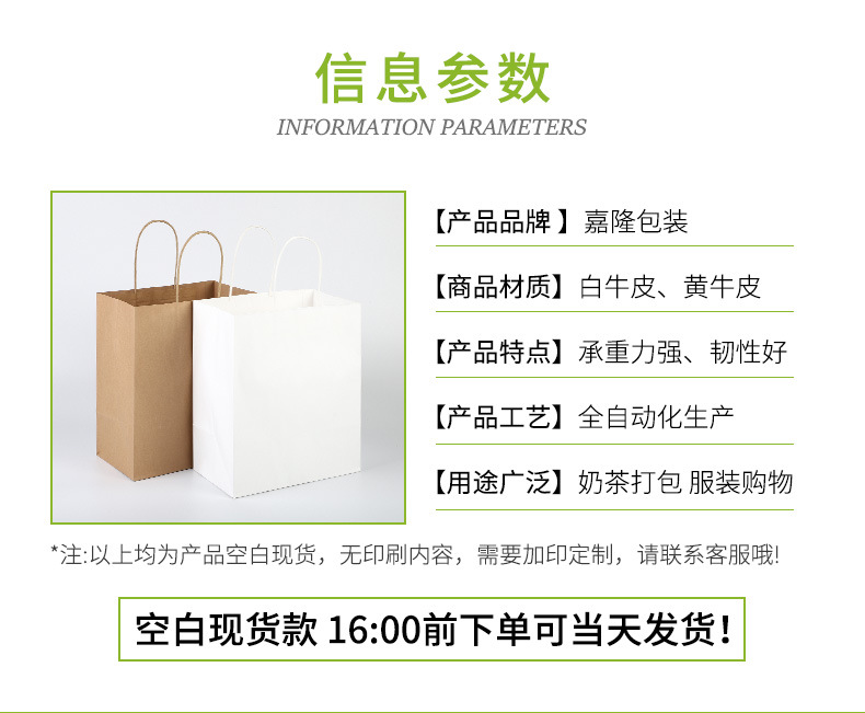 white cowhide; 280*150 * 280mm (catering packing bag)