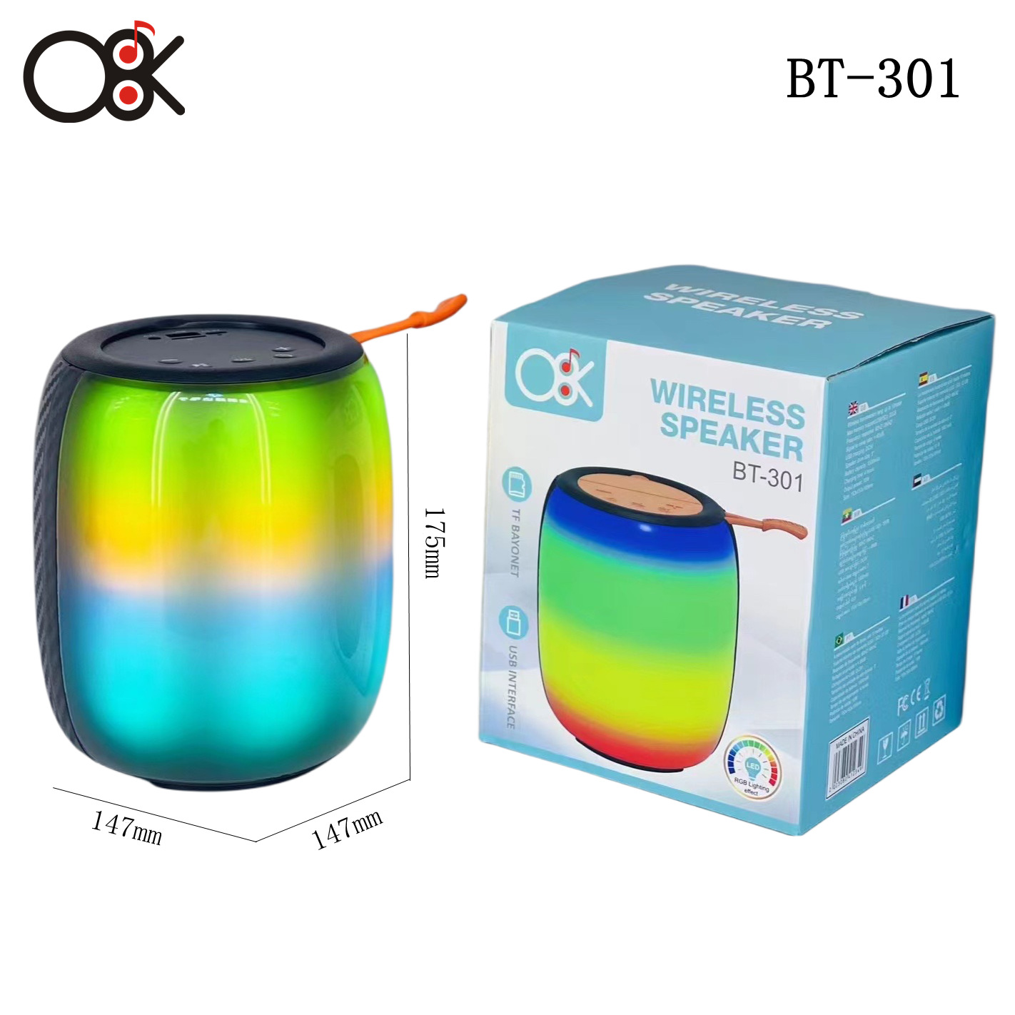 cross-border bt-301 colorful led bluetooth speaker subwoofer family outdoor small speaker