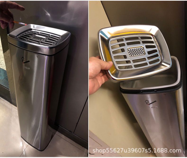 silver square side opening cigarette butt column