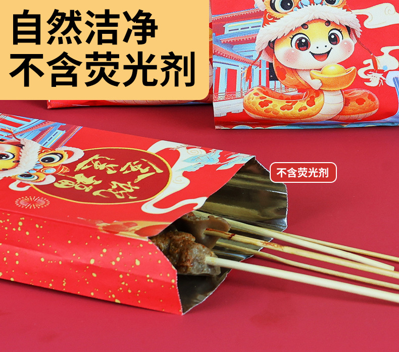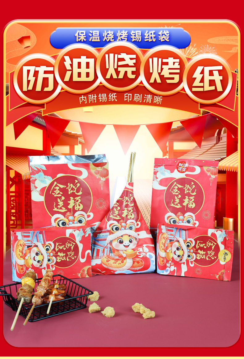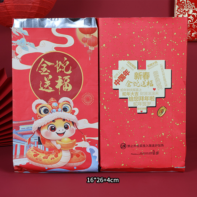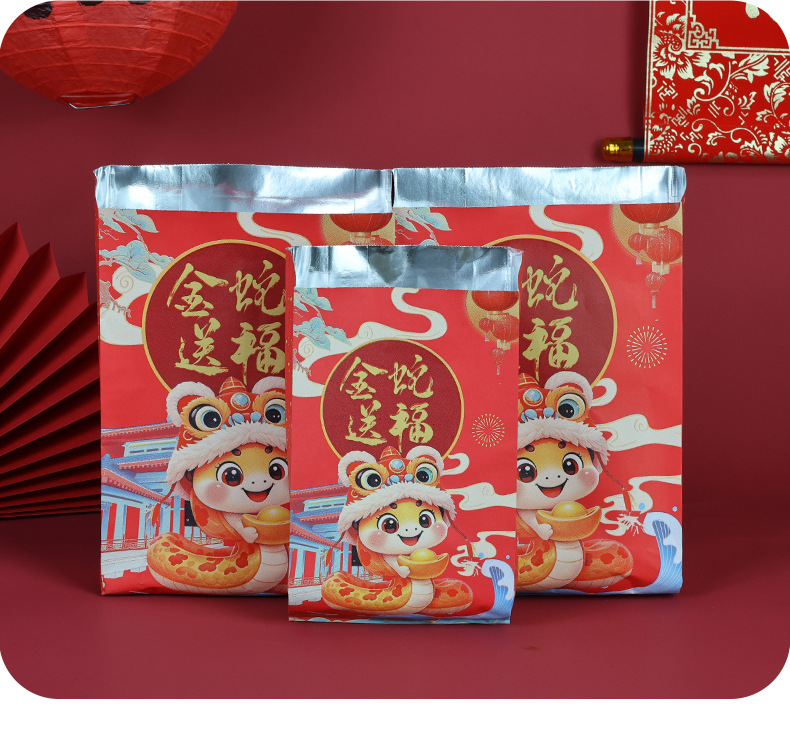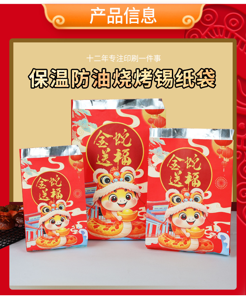 large size 16*31*4cm;2025 snake year barbecue bag; 75g white cowhide aluminized paper