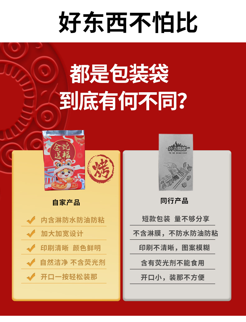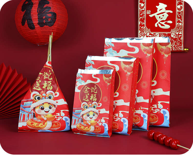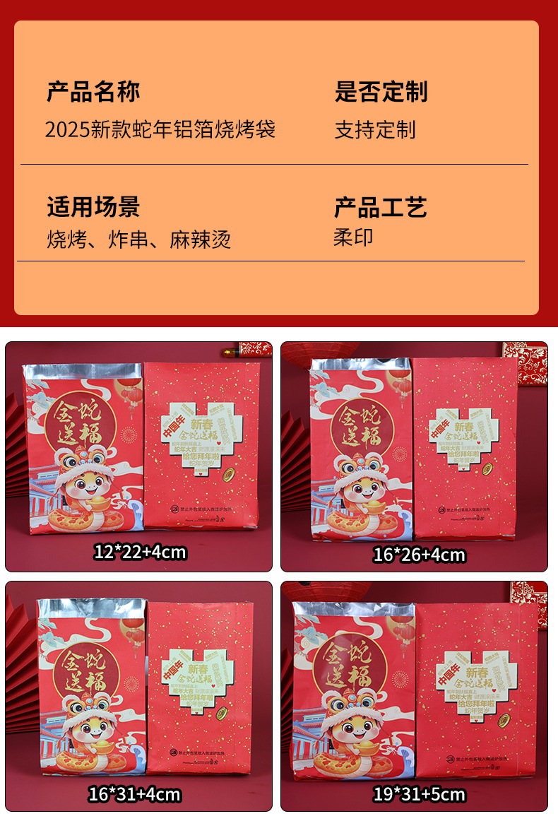 small size 12*22*4cm;2025 snake year barbecue bag; 75g white cowhide aluminized paper
