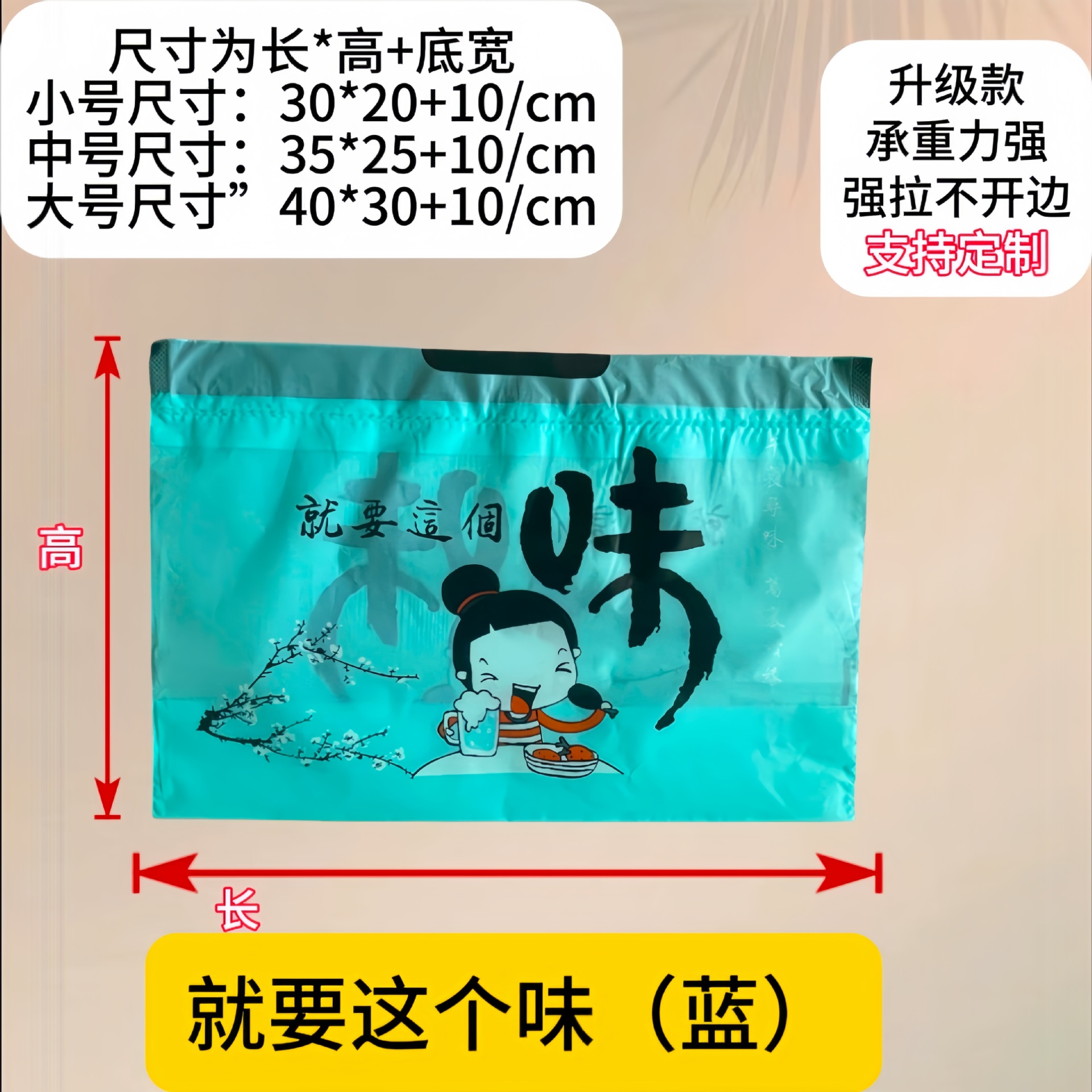 (blue) is this flavor; small size (30x20x10); polyethylene (pe)