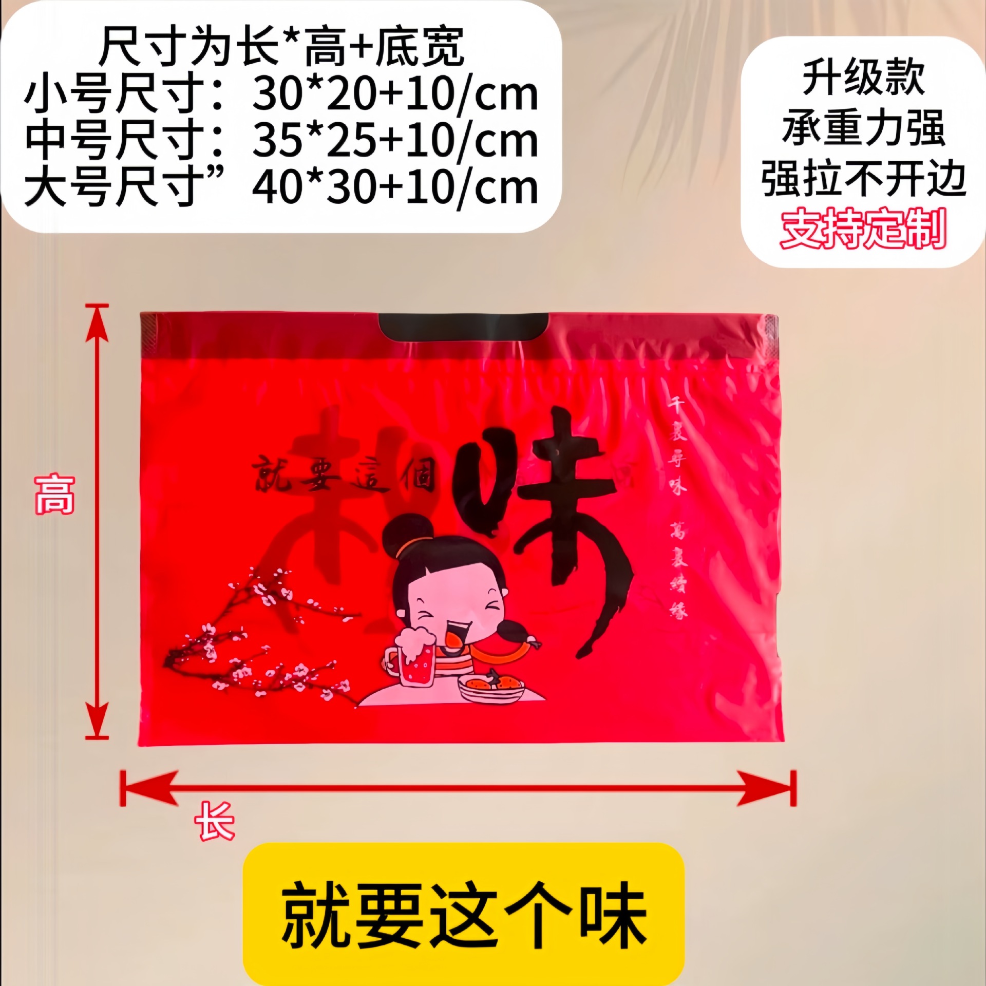 (red) is this flavor; large size (40x30x10); polyethylene (pe)