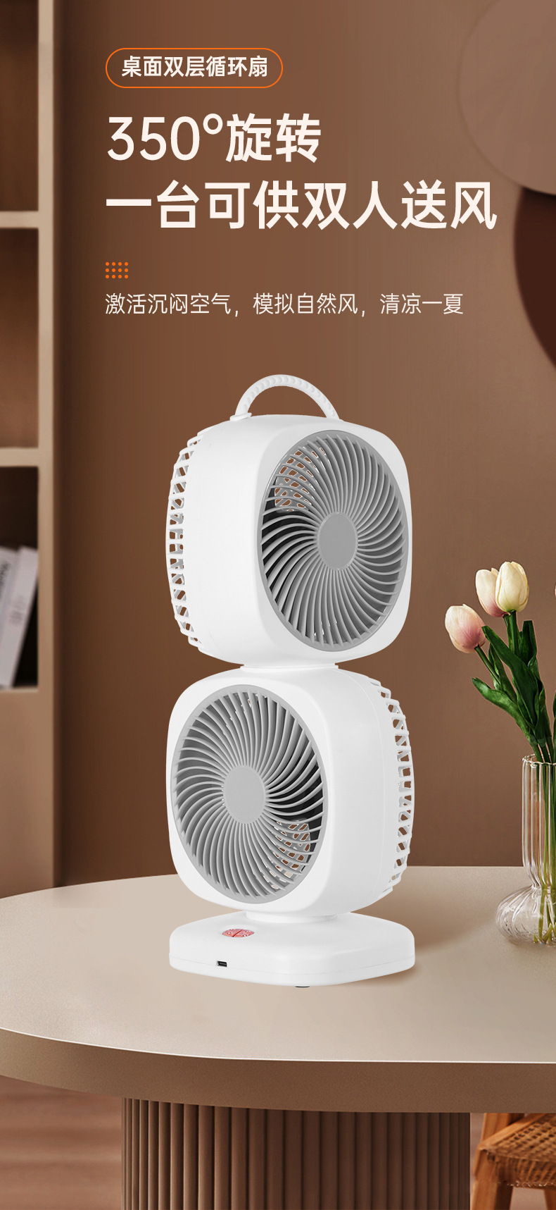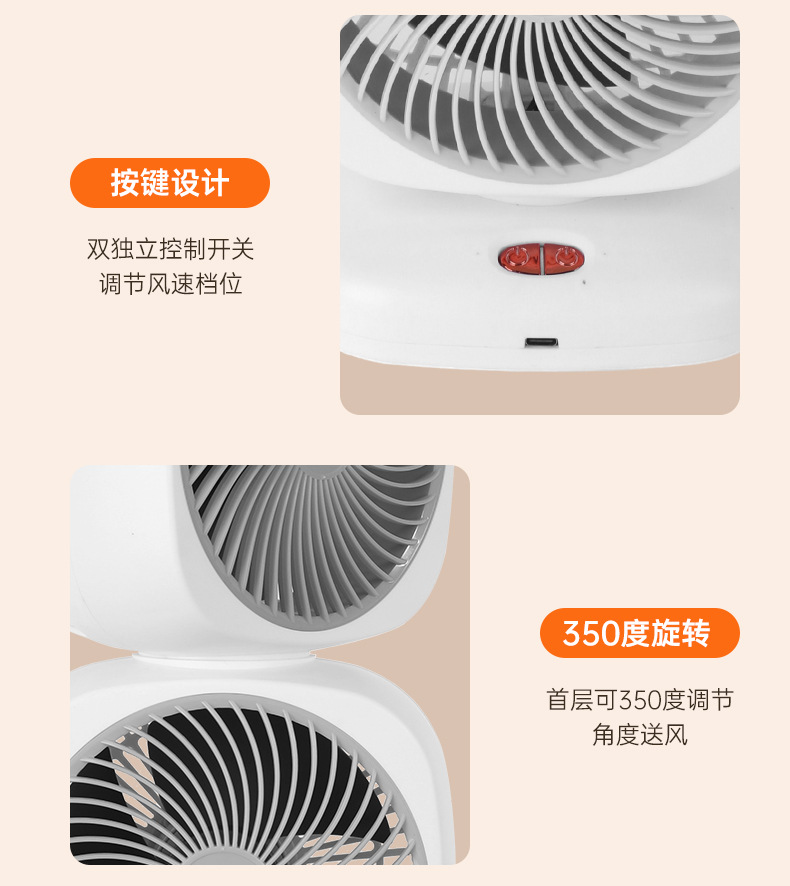 foreign trade exclusive for desktop fan circulating large wind power dual motor usb power supply floor dormitory dual-purpose charging and plug-in foreign trade