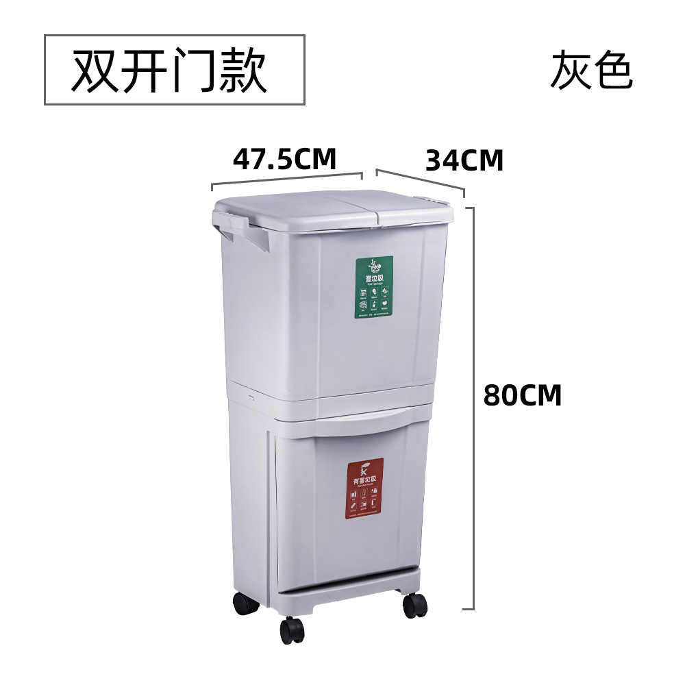 classification wet and dry trash can 45l double door (gray)