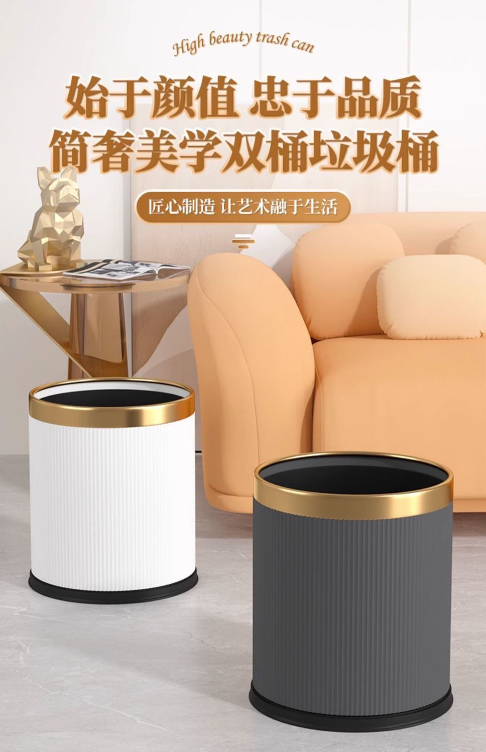 10l double-layer gold roll leaf trash can)