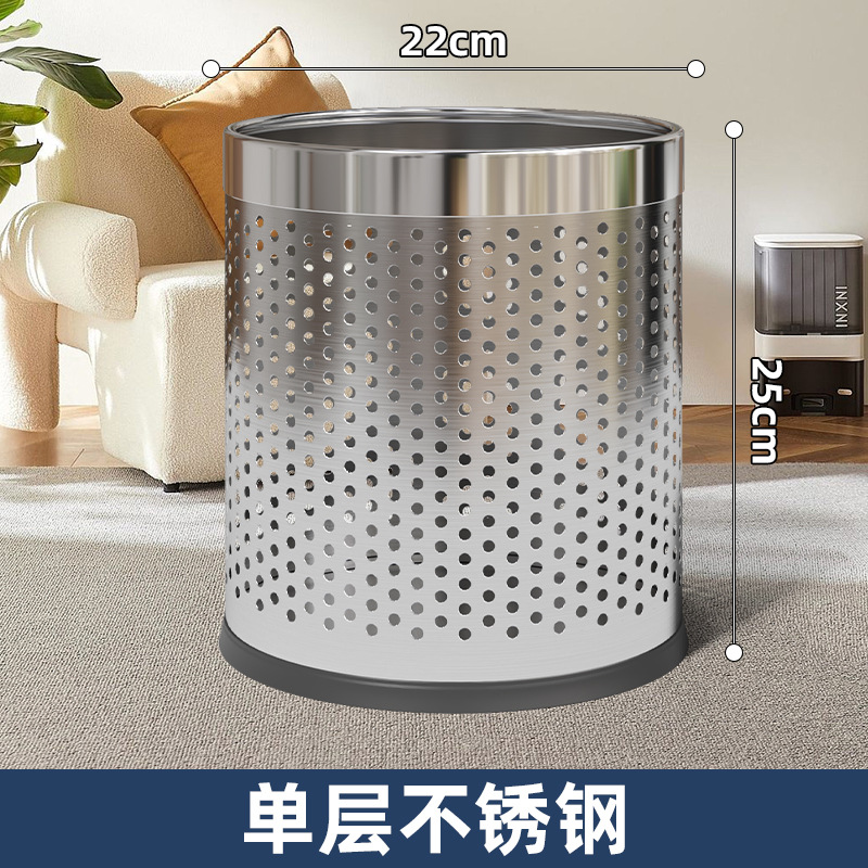 (10l single-layer stainless steel hollow trash can)