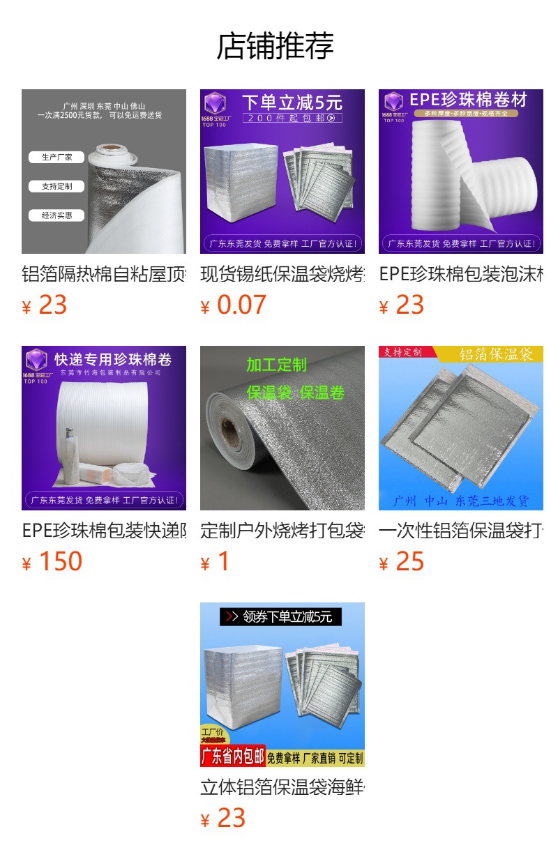 | opening 45*50 * silver flat mouth thickness 3mm * aluminum foil bag pearl cotton | CN¥ 0.95 | 1230 piece available |