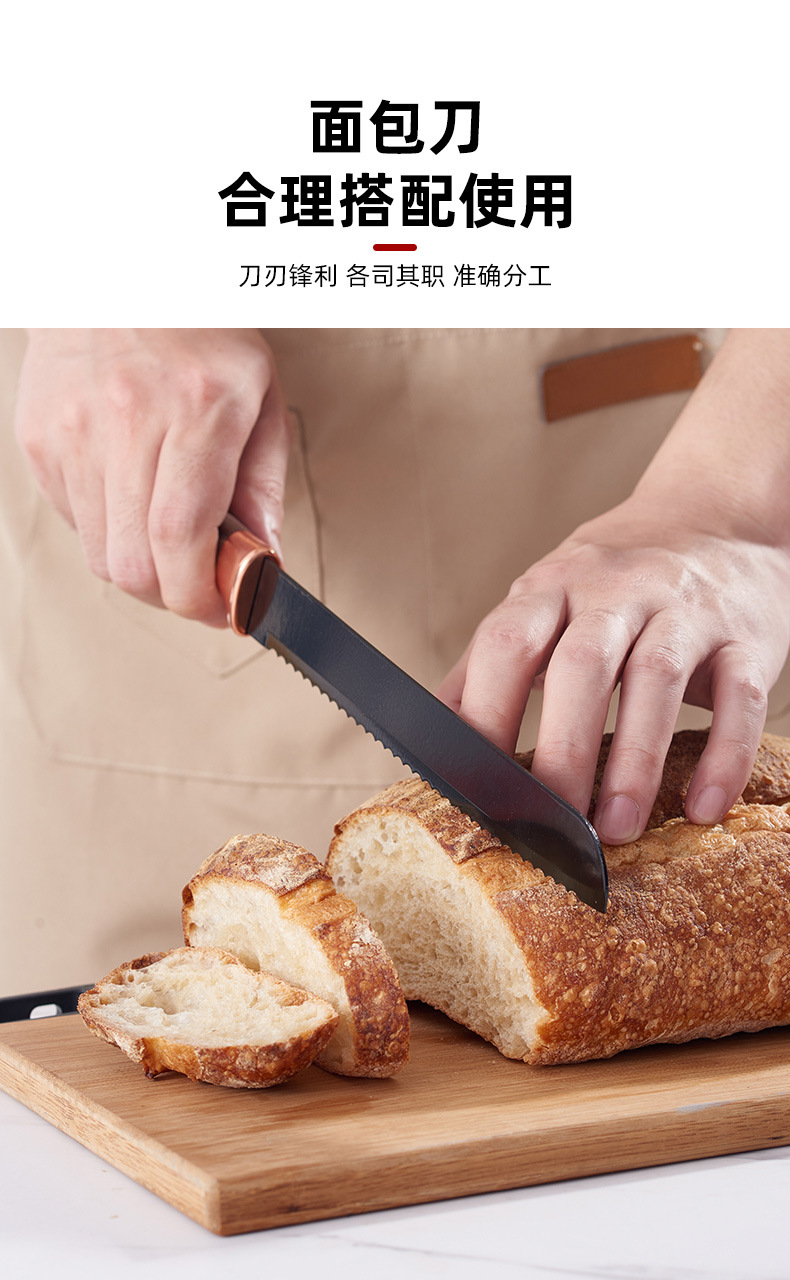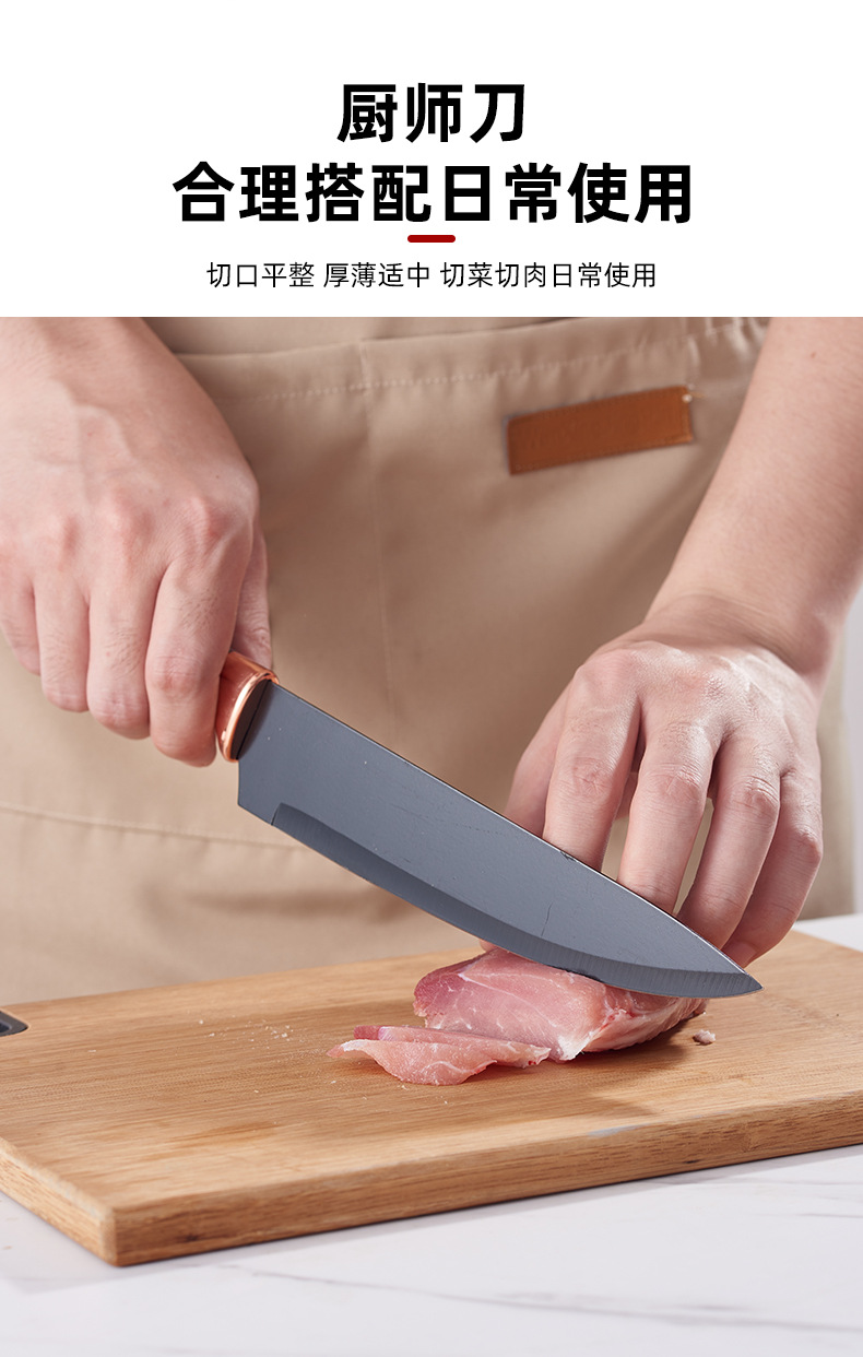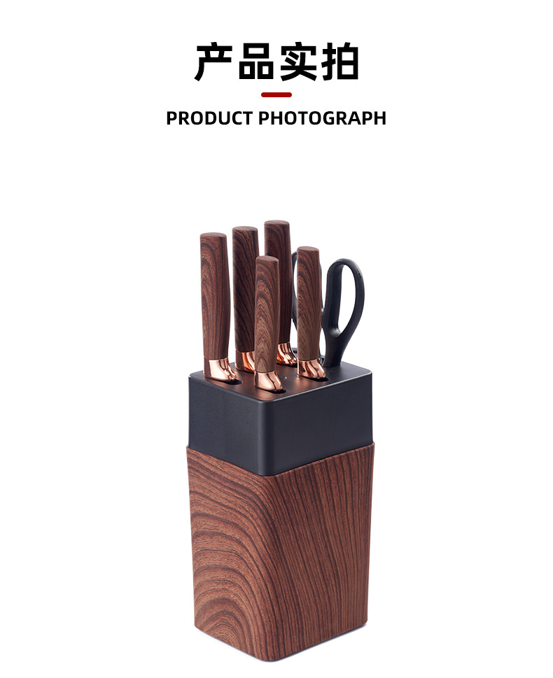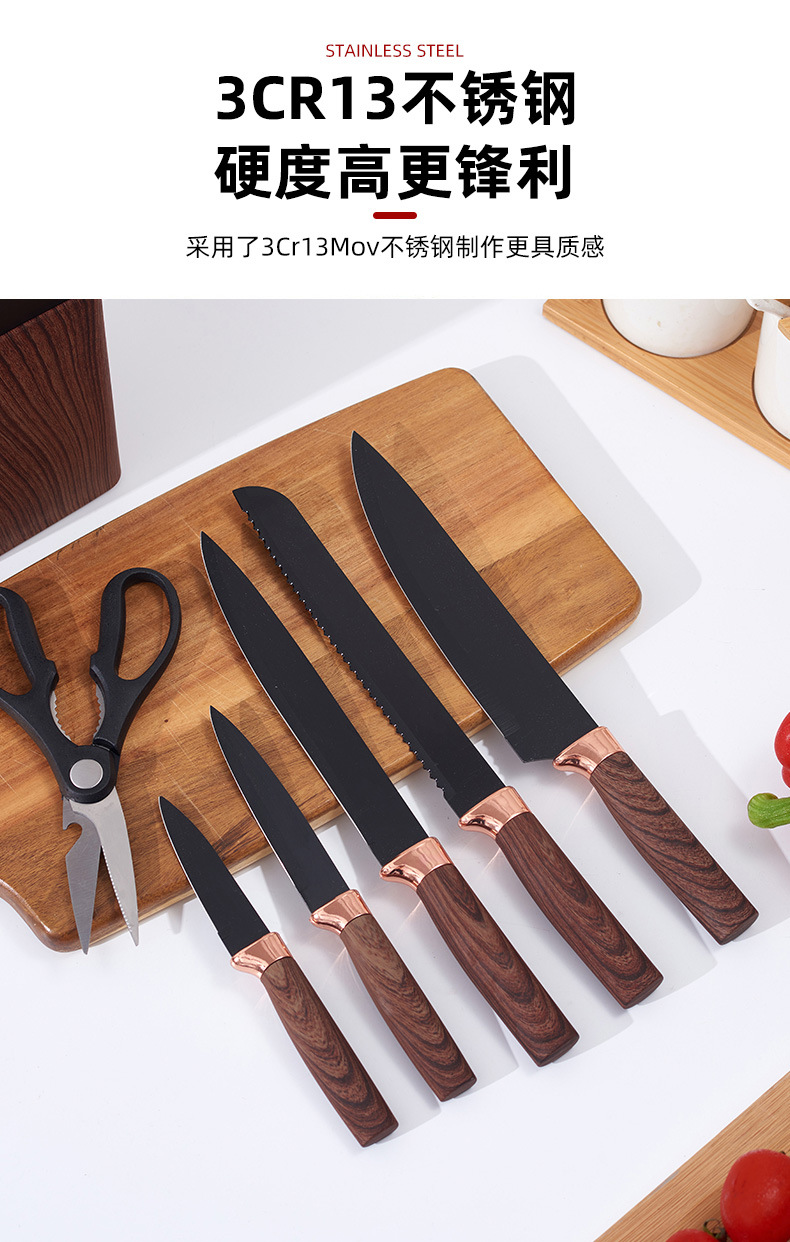 cross-border non-stick knife suit diamond pattern black wood texture seven-piece gift knife set household kitchen knife