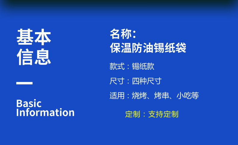 wang po barbecue aluminium foil bag; 19*31+5 extra large; 75g white cowhide aluminum foil CN¥ 0.34 9988766 piece available