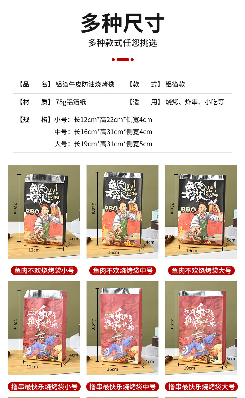 in stock barbecue bag thickened snack skewers aluminium foil bag disposable aluminum foil oil-proof food takeaway packing bag