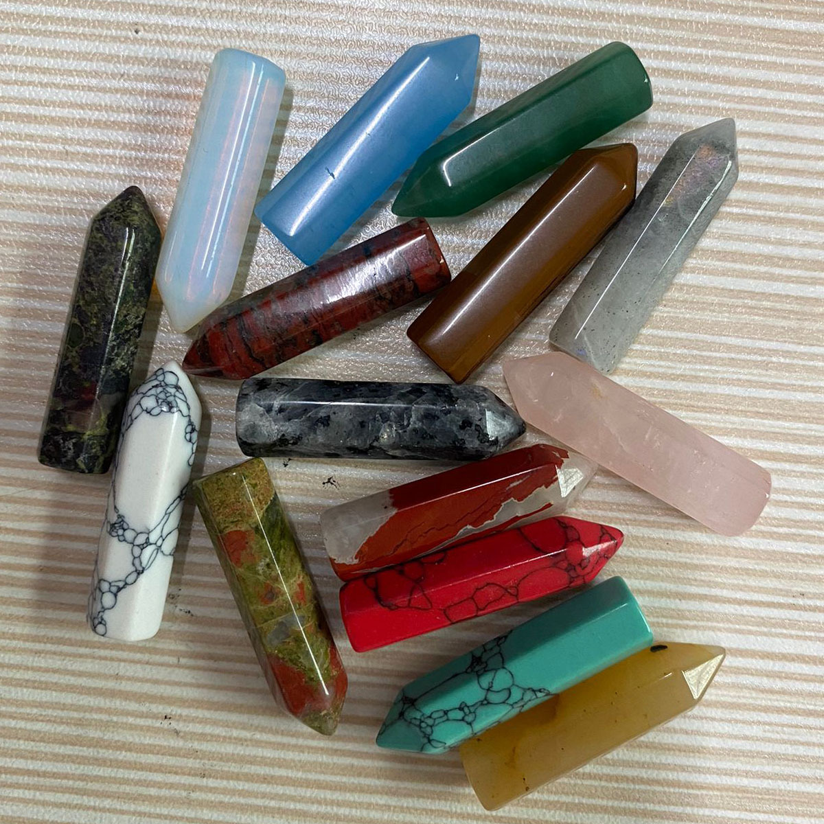 single tip hexagon prism random color mixing (about 32x8mm)