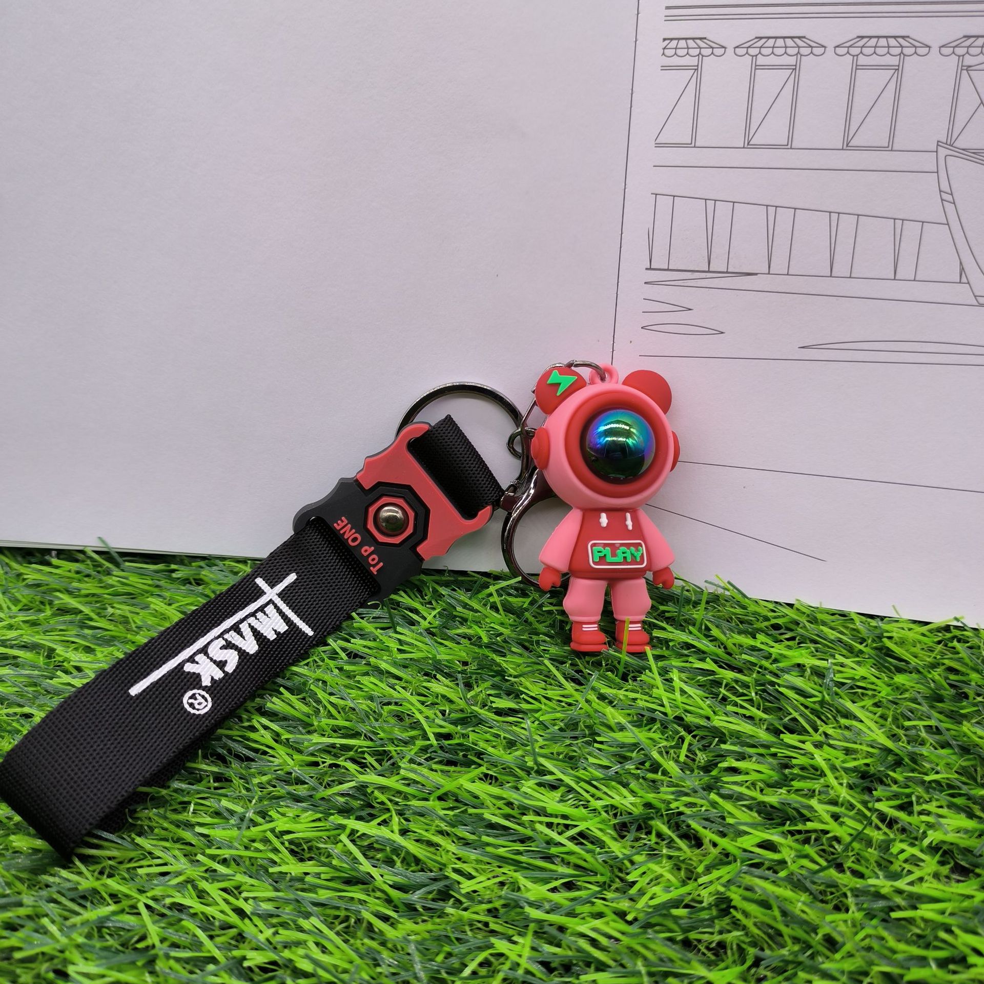 跨境play可爱织带闪电熊钥匙扣公仔批发女书包小熊挂件男汽车挂饰